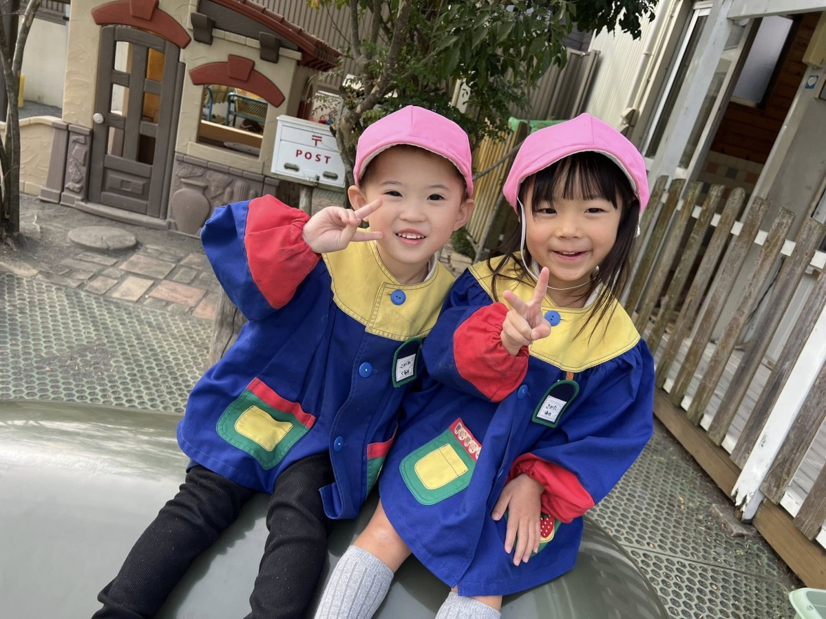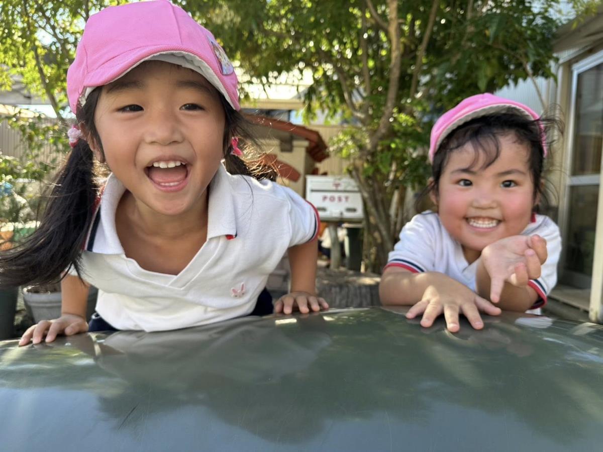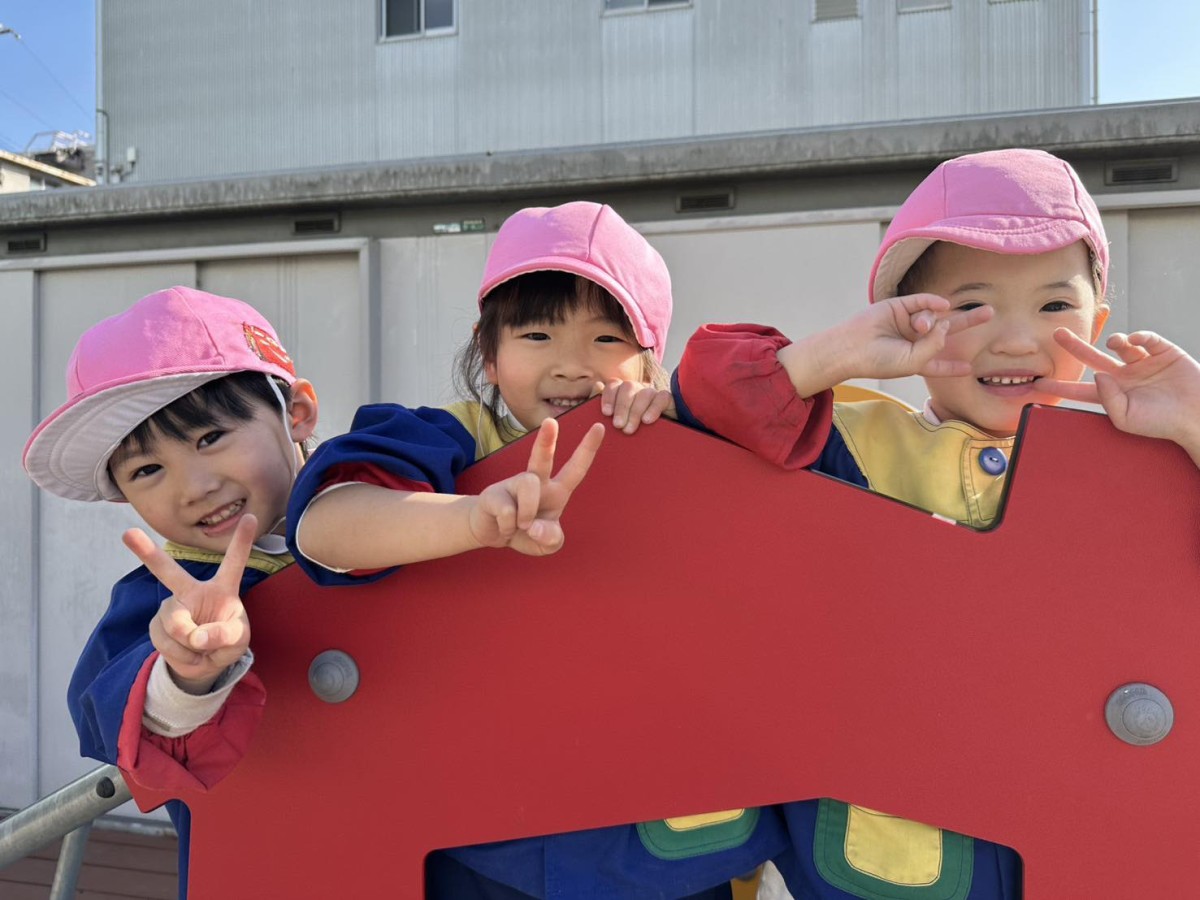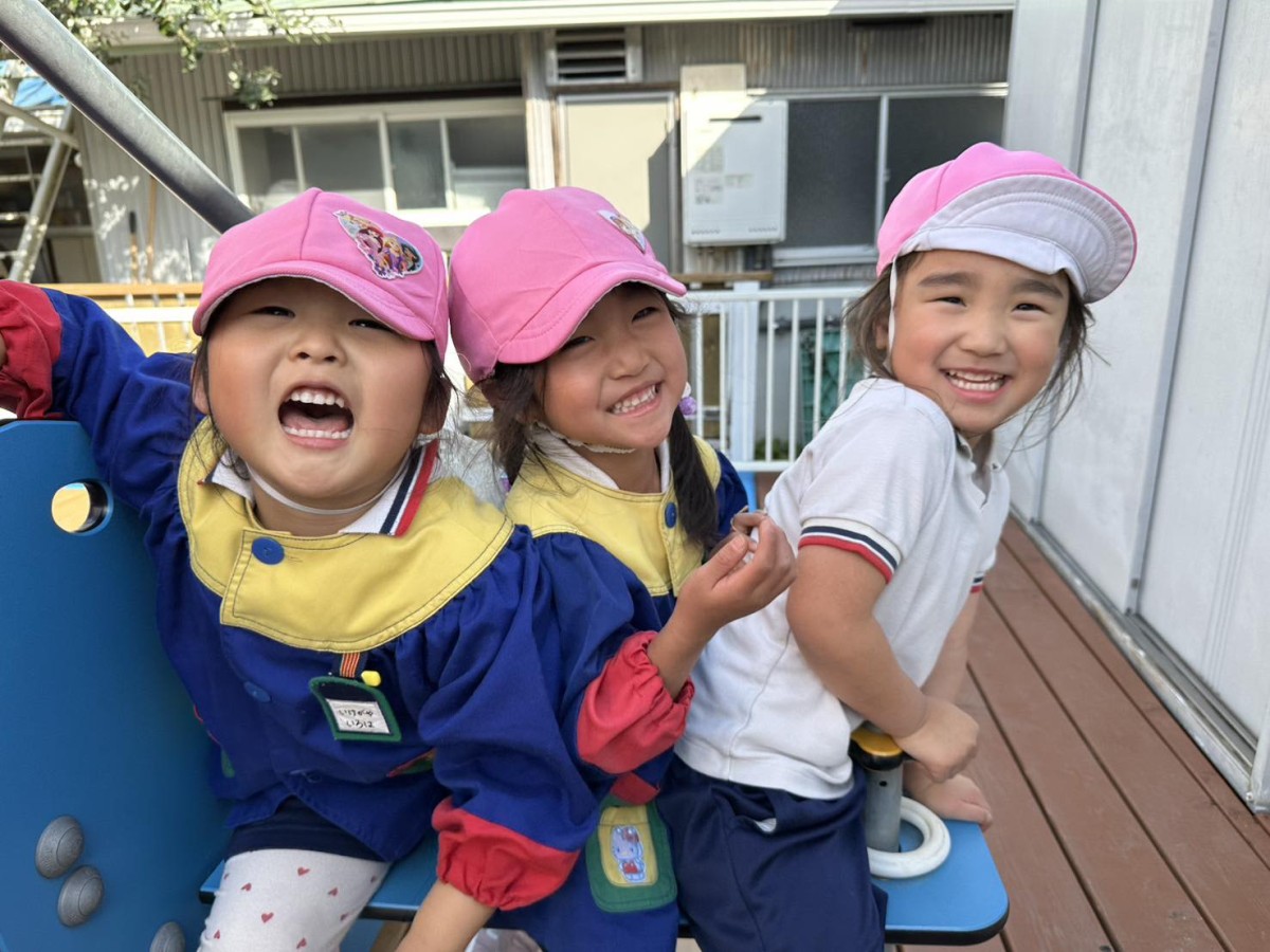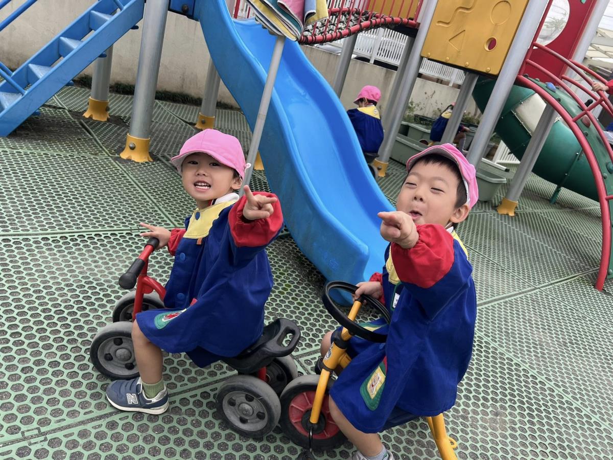 | 園庭で遊びました。三輪車を漕げるお友だちが増え、成長を感じます。友だちと、「信号が赤でーす!止まってくださーい」など遊びに夢中です。 |