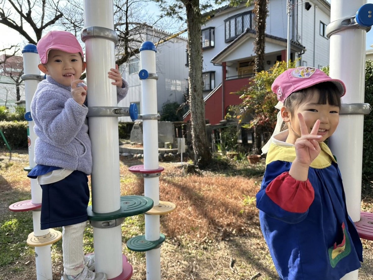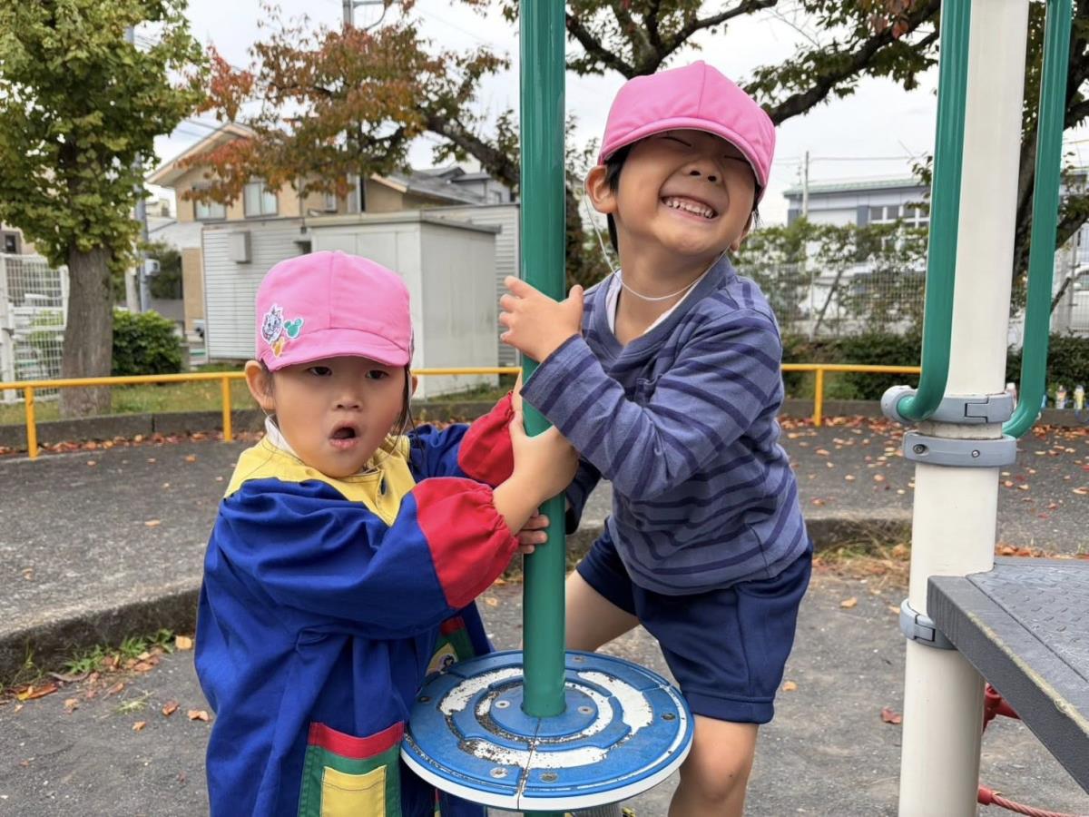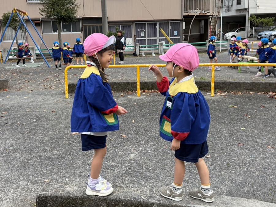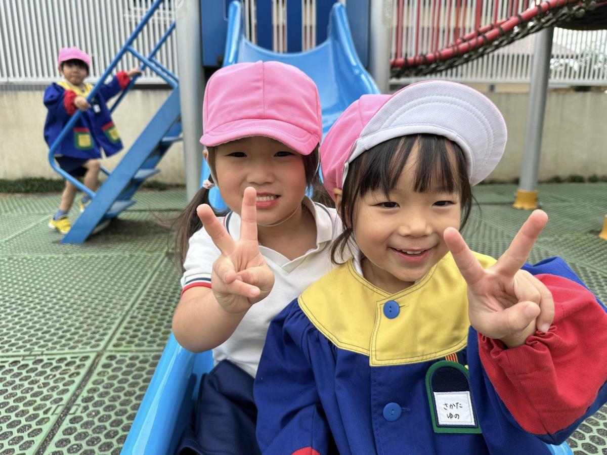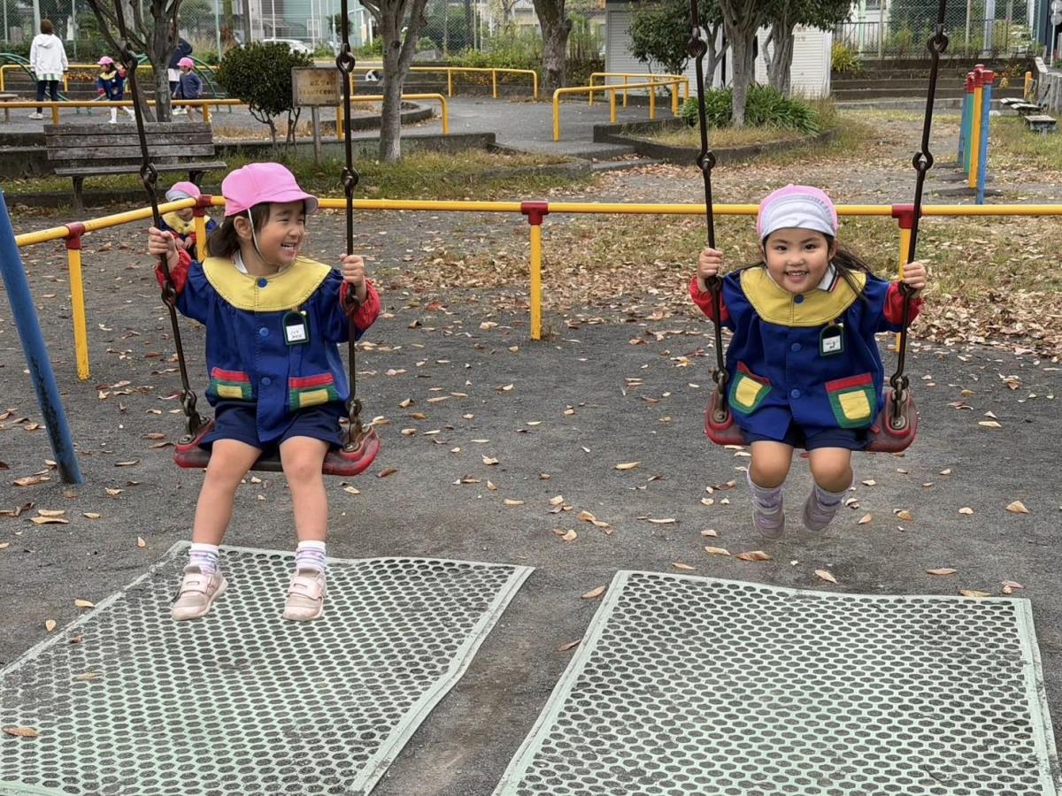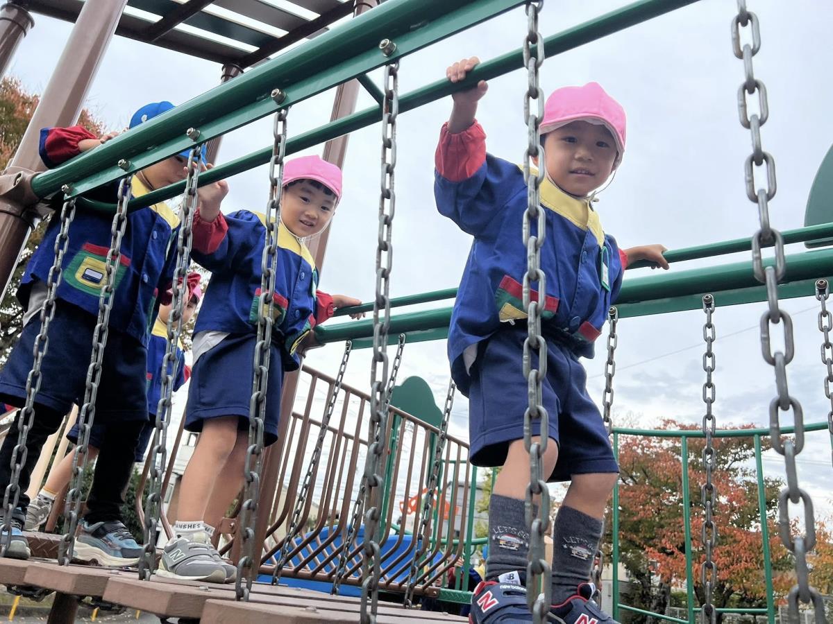 | 午前中はオペレッタの練習をし、午後は住吉公園へ行きました。遊具で思いっきり遊び、笑顔がたくさんみられました。今まで怖くて一歩踏み出せなかった遊具にも挑戦する姿が見られたり、成長を感じたお散歩にもなりました。 |