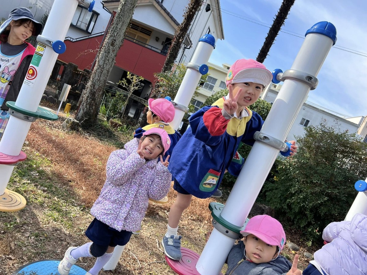 | 今日はリトミックがありました。リトミックはみんな大好きな時間です♪楽しく身体を動かしてきました。午後は園庭で遊びました。一緒に遊ぼ♡とお友達を誘いあって可愛い笑顔を沢山見せてくれます☺︎ |