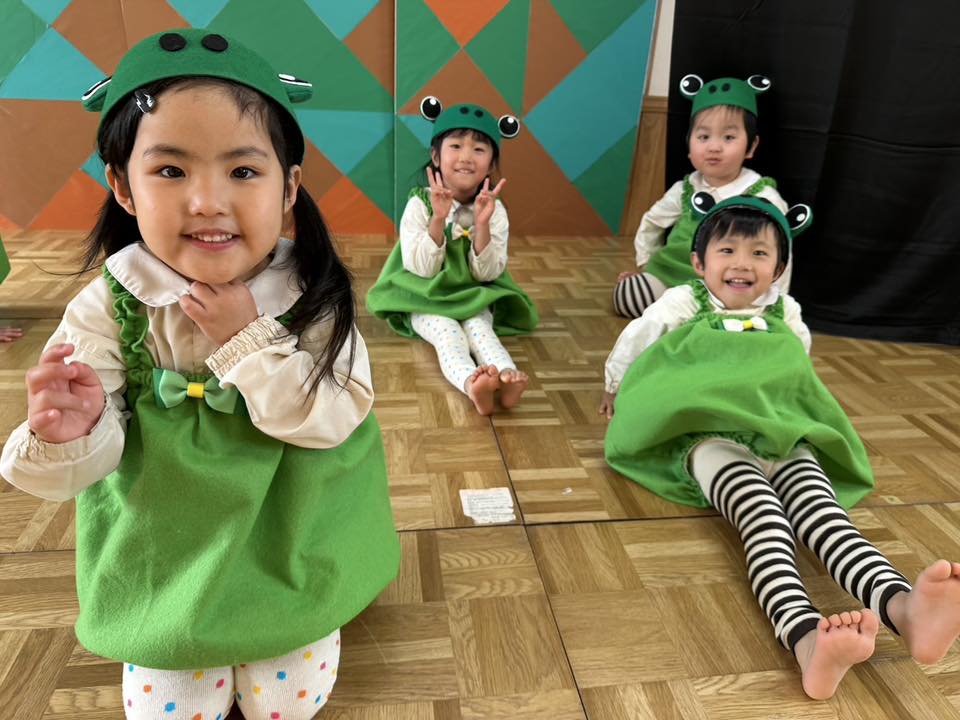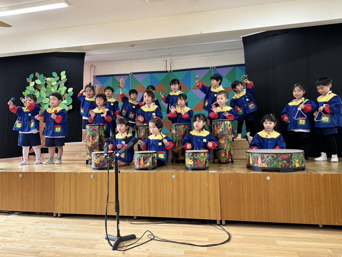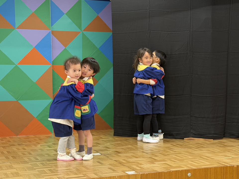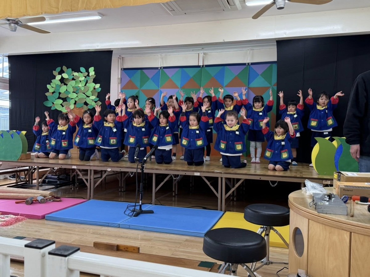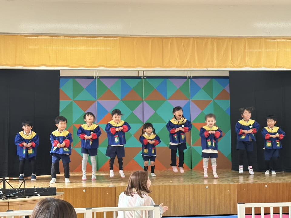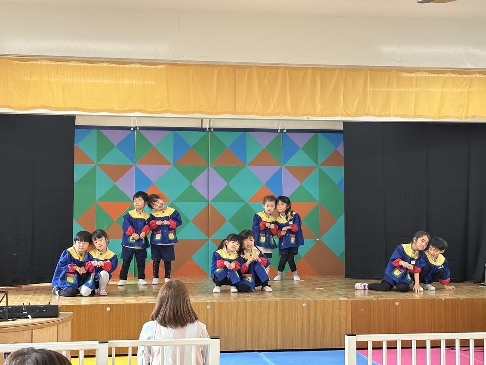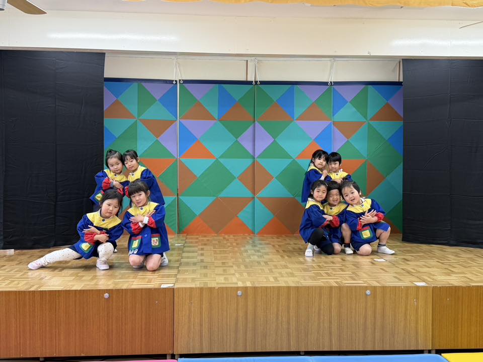 | 今日は待ちに待った発表会本番の日。延期になってしまった後も、毎日楽しく練習していました。本番前は「ちょっとドキドキしちゃう」と言っていたお友だちも、お家の方の前でにこにこ嬉しそうに演目をこなしてくれました。どの子も立派に頑張りました。たくさんの温かい拍手、ありがとうございました。 |