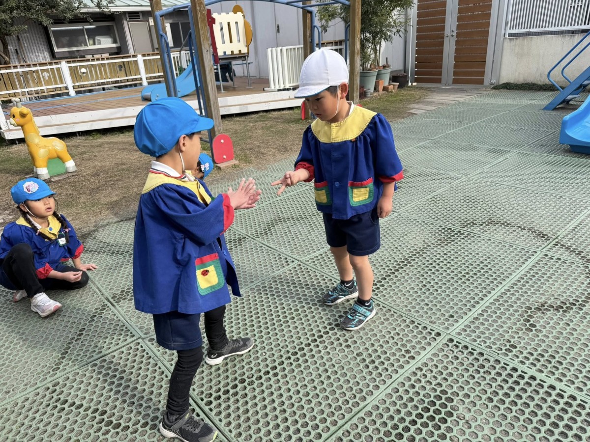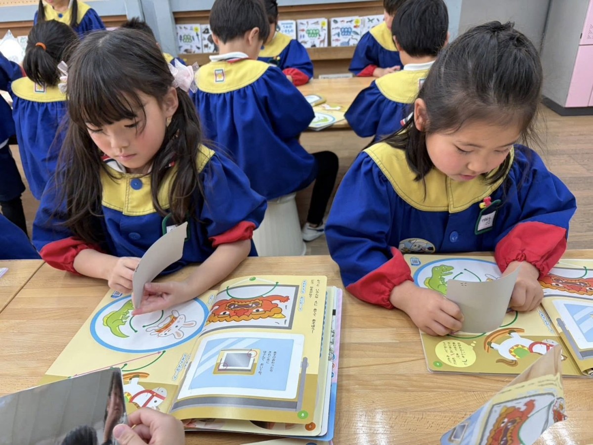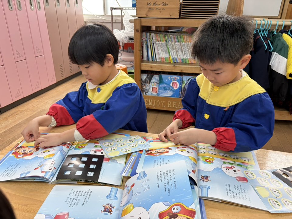 あけましておめでとうございます。今年もよろしくお願いします。 長いお休みを終えて、元気に登園してきてくれたお友だち。お休みのとき、なにをして過ごしていたかのお話で盛り上がっていました。 今日は英語がありました。午後は園庭で遊んだり、月刊誌を読んだりして過ごしました。