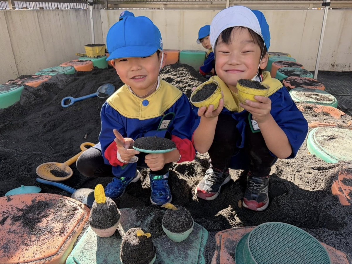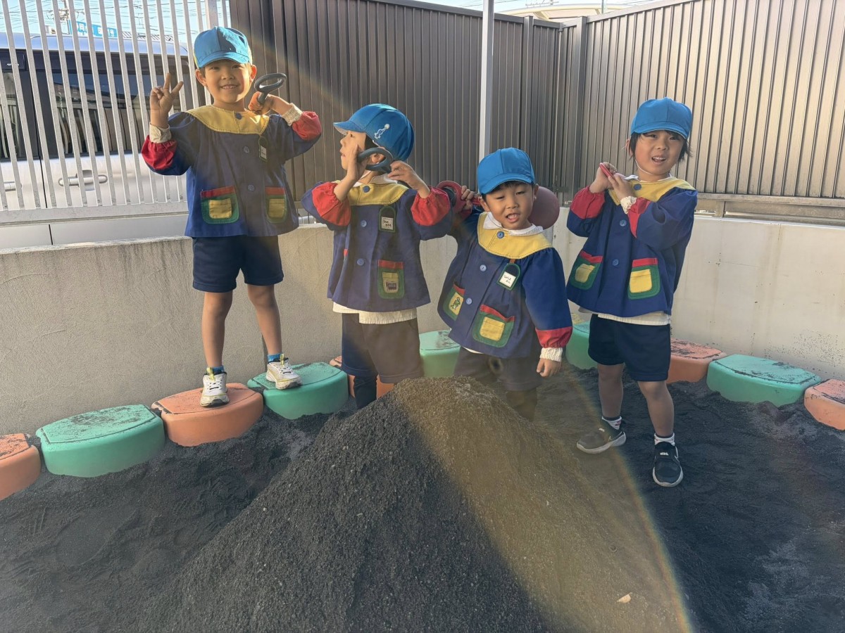 午前は月刊誌を進めました。長いお話でしたが集中して取り組んでいました。午後は園庭で遊びました。お砂場で富士山を作って「先生!みて!できたよ!」と元気よく教えてくれました。