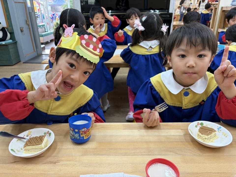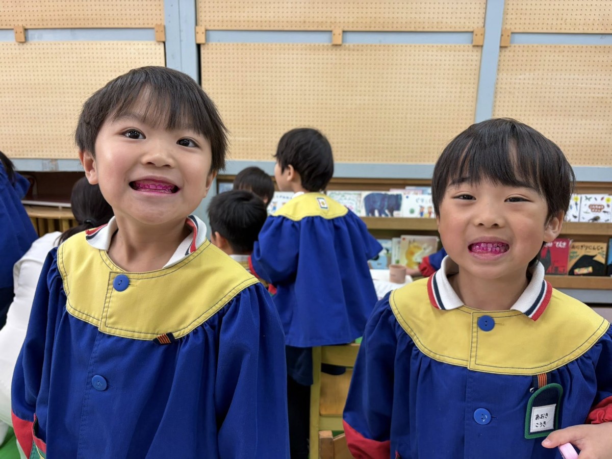 午前はお誕生日会に参加しました。今月は4人のお友だちがお誕生日を迎えます。一人ひとりかっこよくインタビューを受けると拍手でお祝いしてくれたあお組さん。午後はお勉強をしてからたっぷりと園庭で遊びました!