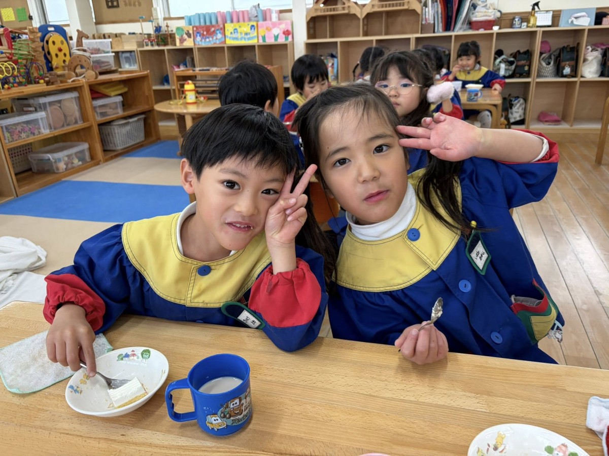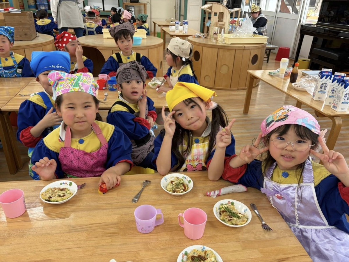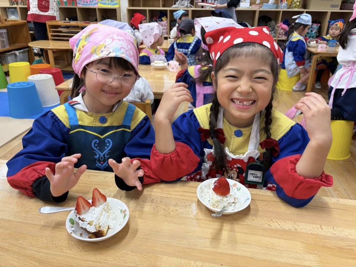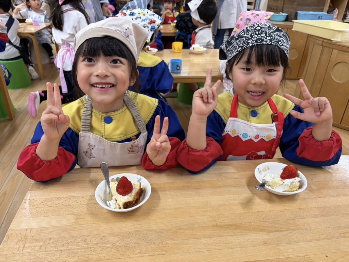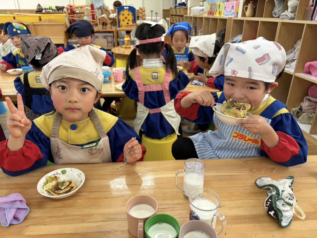 午前中はオペレッタ、お遊戯の練習をしました。セリフも大きな声で言えるようになってきました。お遊戯の練習では右左を間違えないよう意識しながら練習を行いました。午後は、園庭で遊んだあとクッキングがありました。今回はホットケーキを作りました。卵を割って牛乳をいれてよくかき混ぜて、、、。しろくまちゃんのホットケーキのお話しを思い出しているお友だちもいました。自分たちで作ったホットケーキ、とっても美味しそうでした♪
