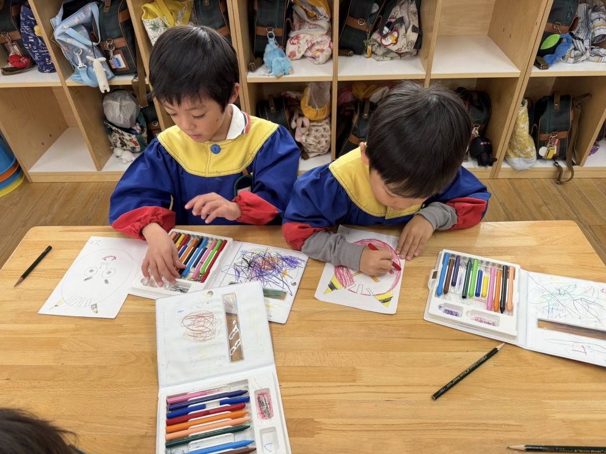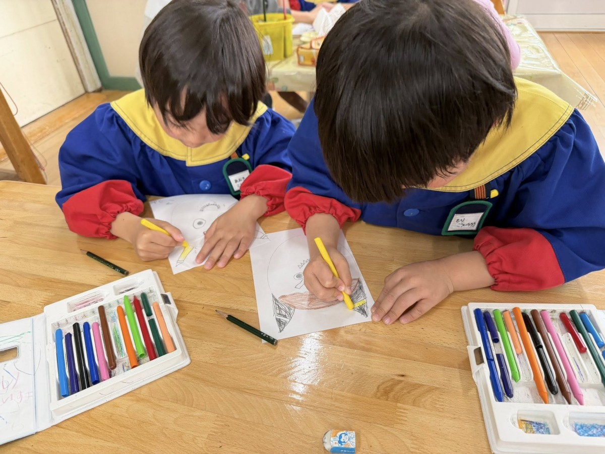 午前中はまなびきっずをやったあと、折り紙をしました。まなびきっずでは10の仲間を作り数を数える項目でした。ちょっぴり難しそうなお友だちでしたが、最後まで諦めずに取り組んでいました。午後は、鬼のデザイン画を描きました。どんな鬼を作ろうか・・・悩みながら描いていました。