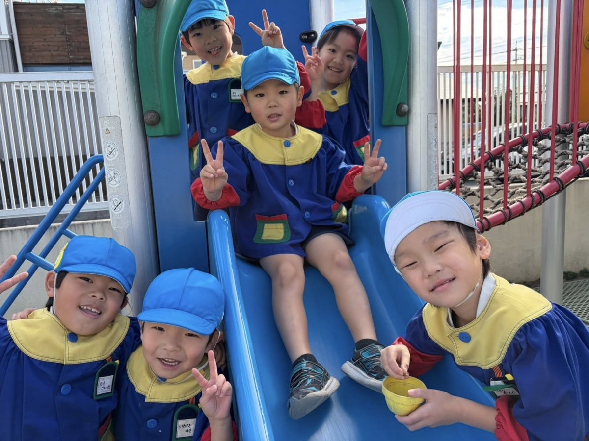 午前中は発表会の練習をしました。セリフや動きを覚えて練習を頑張っています。午後は、もも組さんと一緒に住吉公園まで行ってきました。久々の住吉公園。とっても楽しそうでした。