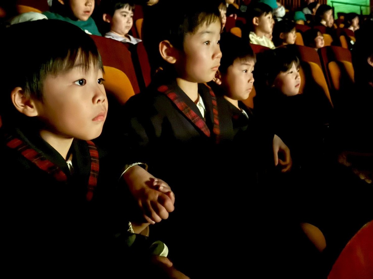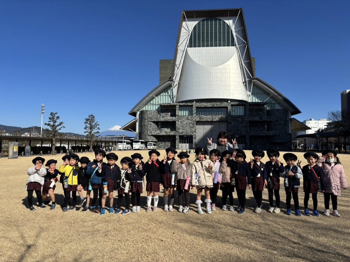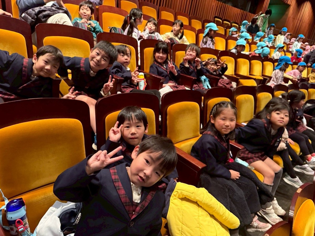 午前中はオペレッタの練習をしたあと、制作をしました。門松やウマをペラペラさせないようにのり付けしました。ハサミも使い、可愛らしい作品が出来ました。ハサミの使い方も上手になりましたね♪ 午後は観劇に出かけました。楽しみにしていたあお組さん。バスでのお出かけは、特別感がありはしゃいでしました。「やさしいらいおん」のシルエット劇を見たり、お歌を歌ったり、、、目をキラキラさせながら見ていました。