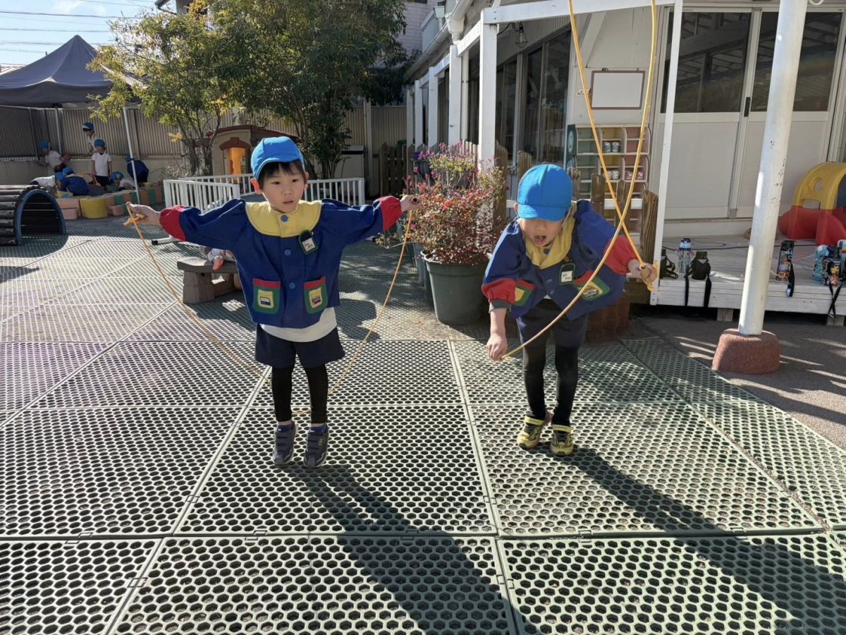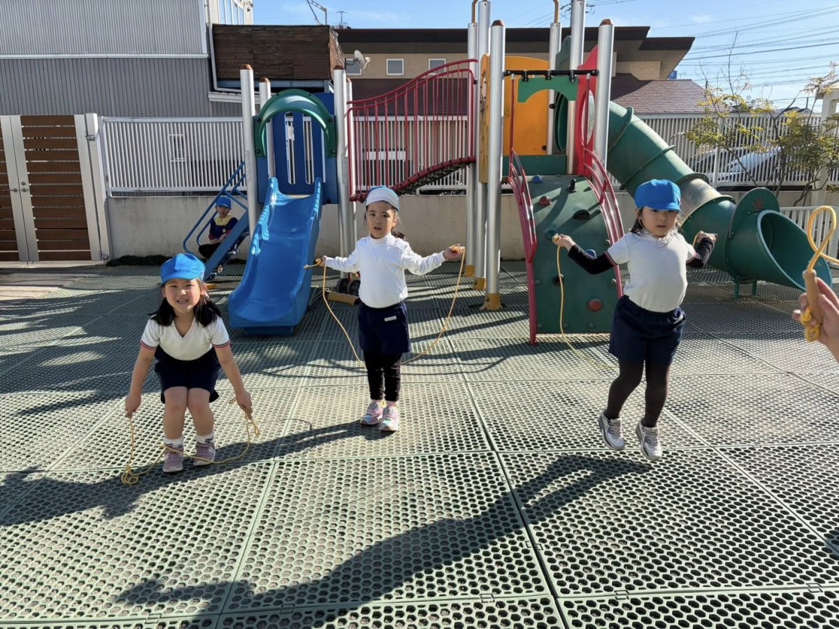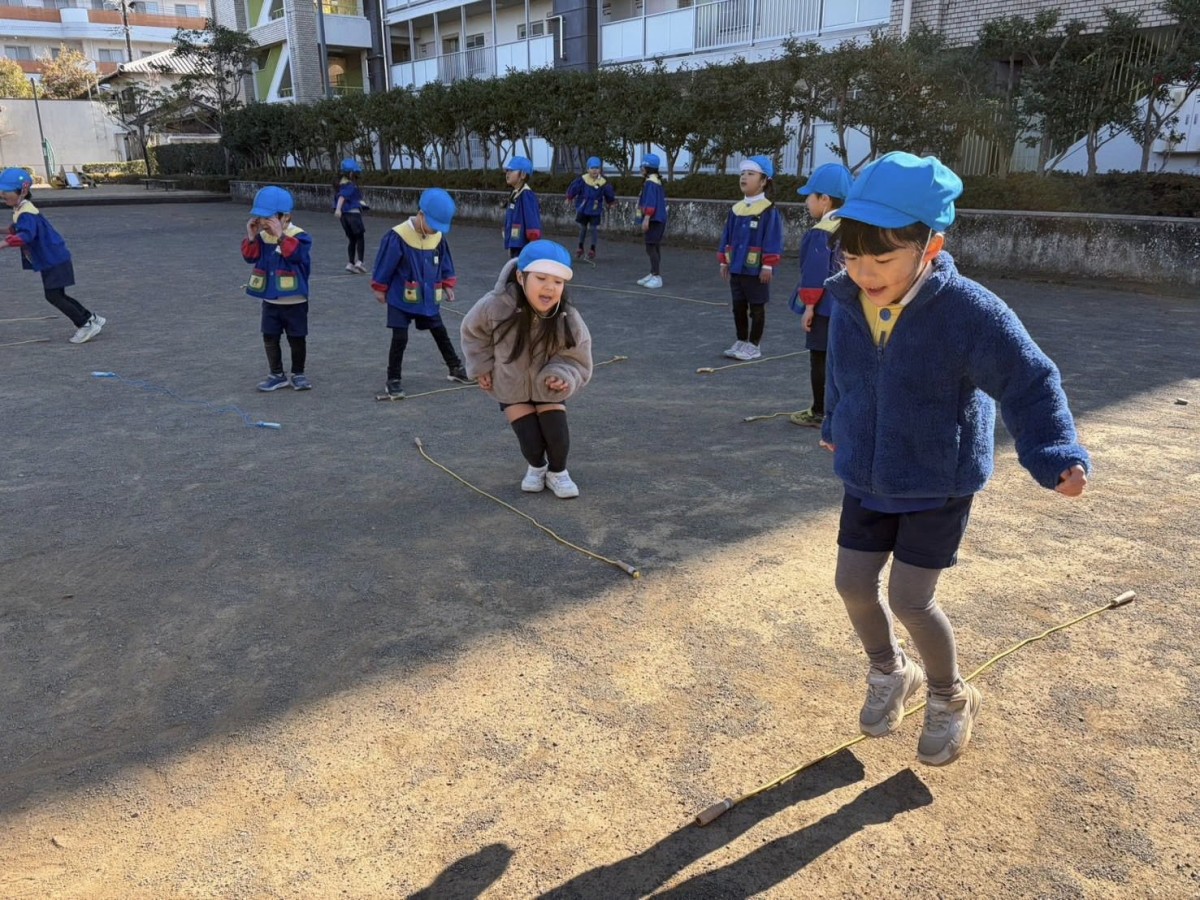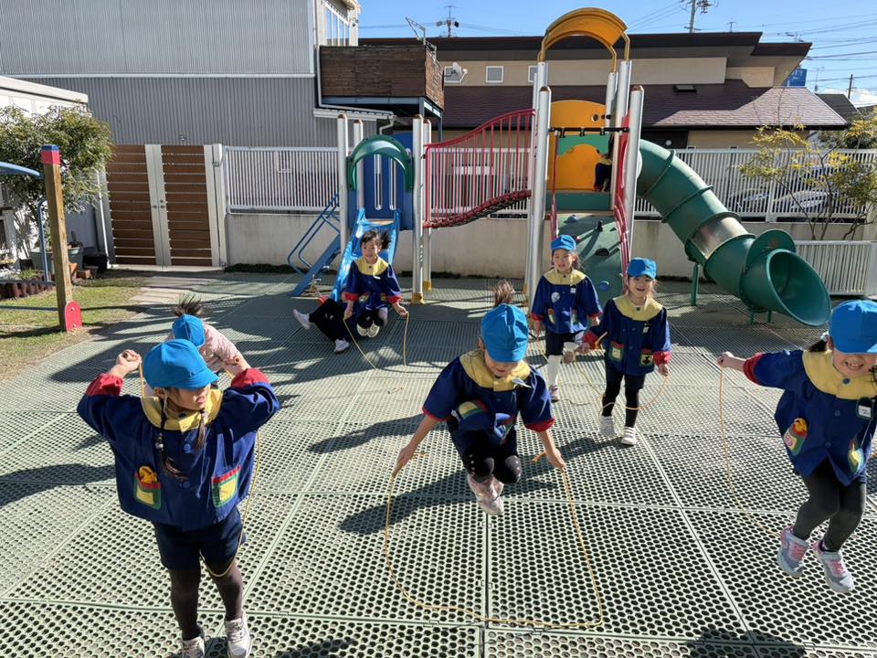 午前中は誕生日会がありました。あお組さんからは1人のお友達が誕生日を迎えます。インタビューにもしっかり応えることができました。午後は園庭で縄跳びをしたりだるまさんがころんだをしました。縄跳びを跳べるように何度も練習を頑張っています。