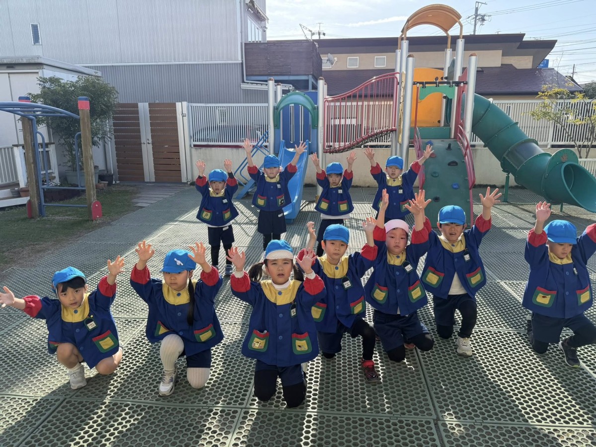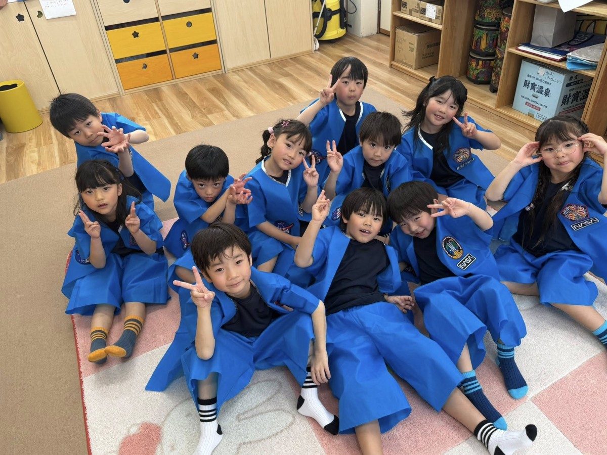 午前中は、衣装を着て発表会の練習をしました。実際に衣装を着ると、いつもの何倍もやる気に満ちていました。上手に出来て大満足でした。お遊戯もカッコよく踊ることができました。午後は園庭でたっぷり遊びました。