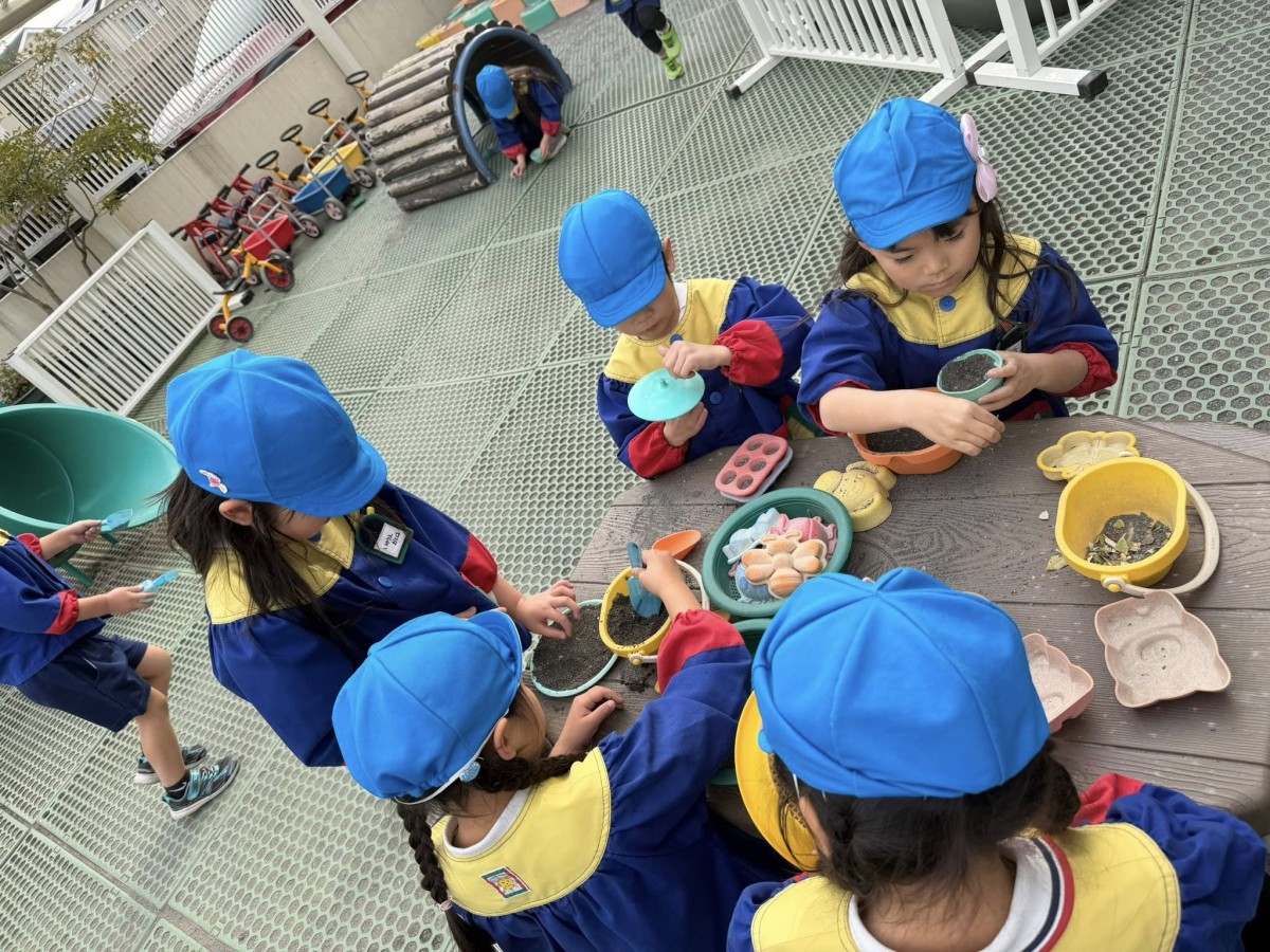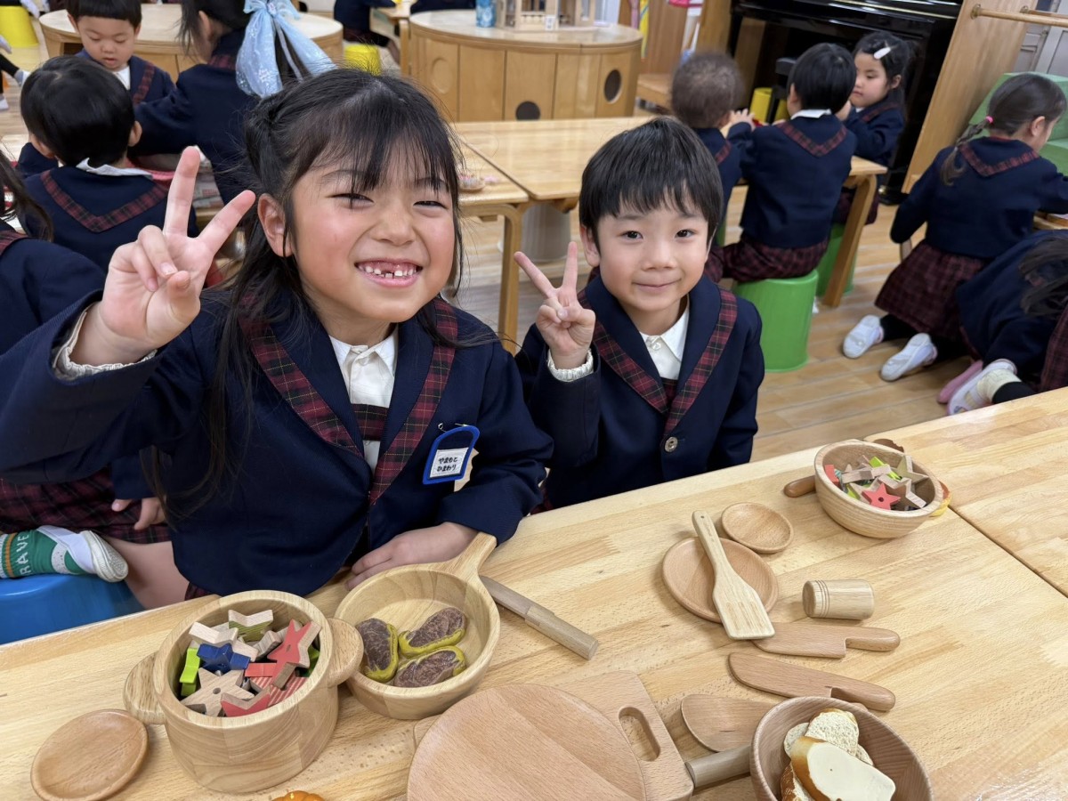 午前中はオペレッタの練習をしたあと、英語がありました。歌の時に声が小さくなってしまうこともありましたが、上手に出来るようになってきました。午後は園庭で遊びました。