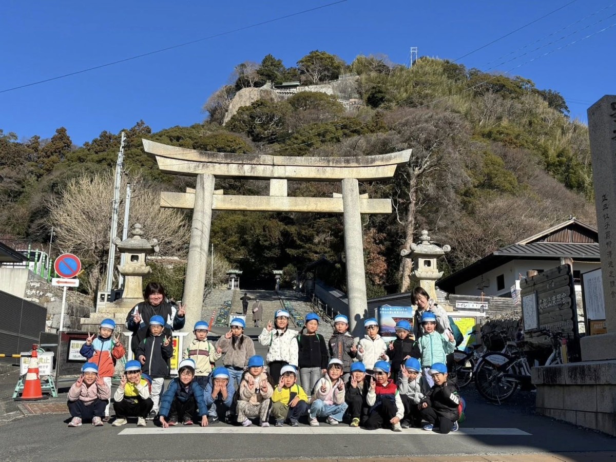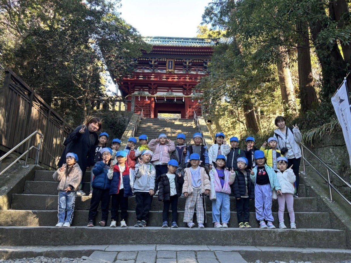 今日は、久能山東照宮まで遠足に行ってきました。1,159段の階段を一生懸命登っていきました。弱音を吐かずに最後まで登りきったあおぐみさん、かっこよかったです。お詣りもしっかりすることができました。夢テラスでは、きれいな富士山を見ることができました。お家の方が作ってくれたお弁当もあっという間に食べ終え、最後までパワフルなあお組さんでした。