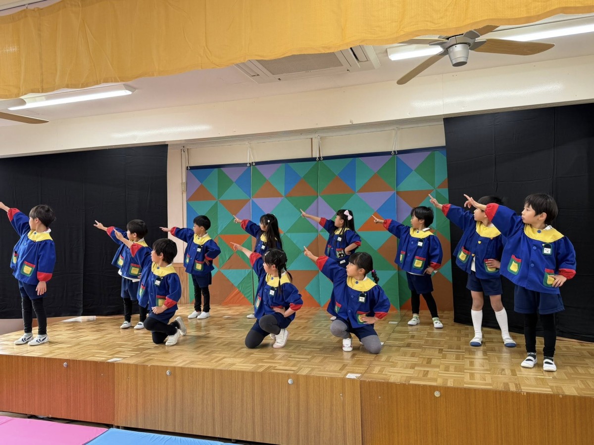 今日は待ちに待った生活発表会本番!秋ごろから練習を始めて、ついにお家の方に見てもらうことが出来ました。今まで練習を頑張ってきた成果を発揮することが出来ました。オペレッタ、お遊戯とっても上手でしたね。最後のお歌は、素敵な歌声が響いていました。堂々と披露する姿がとっても立派なあお組さんでした。