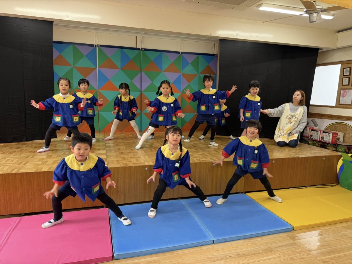 午前中は発表会の練習をしました。毎回楽しみながら取り組んでくれています。玉恵先生にも見ていただき、アドバイスをいただきました。今後はそこを意識しながら練習していきたいです。午後は園庭で遊んだあと、まなびきっずをしました。