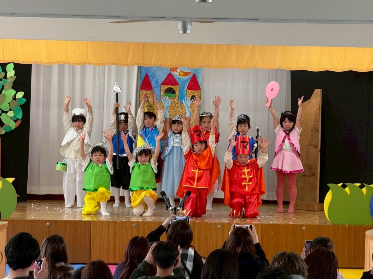 舞台の上でオペレッタ、お遊戯を撮影しました。どの演目も、一生懸命取り組んでいました。真剣な表情だけど楽しそうに見えます♪他のクラスの演目も静かに見ることができました。