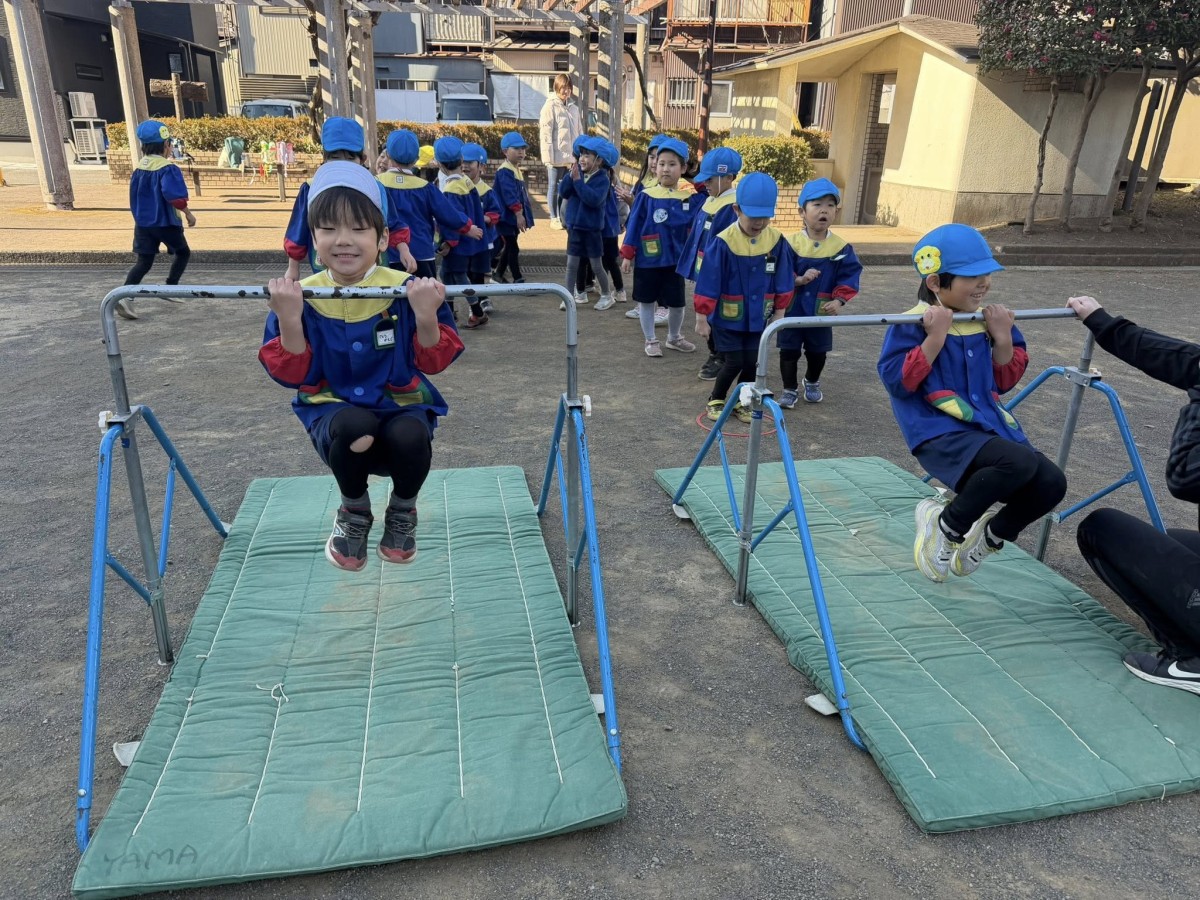 午前中は体育遊びがありました。縄跳びと鉄棒をしました。鉄棒では、逆上がりを練習しました。もう少しで出来そうなお友だちが増えてきました。残り2回ほどですが、楽しんで参加していきたいと思います。午後は園庭でたっぷり遊びました。