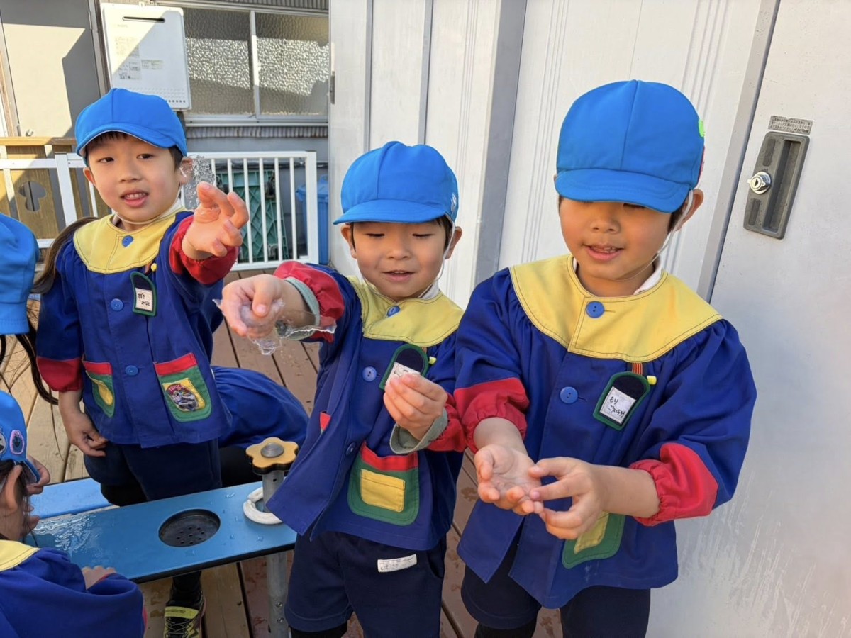 午前中は英語がありました。ビンゴゲームをして盛り上がっていました。午後は鬼のお面作り。紙粘土をたくさん使って、目や眉毛などを作って行きました。昨日の吹雪を楽しそうに話していたらデッキの上で氷を見つけました。触らなかったらどのくらいの早さで氷は溶けるんだろ?と時間を測ったり、カップの中にお水を入れたら今日も凍るかな?と話し合ったりしていました。