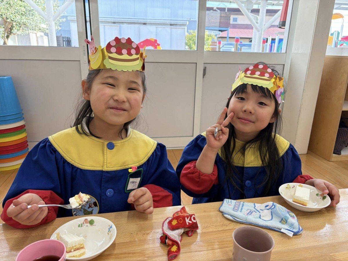お誕生日会に参加しました。今月は3人のお友だちが誕生日を迎えます。インタビューもしっかり応えられ会が終わった後、「楽しかったね!」とおしゃべり声が聞こえました。午後は園庭で遊びました。