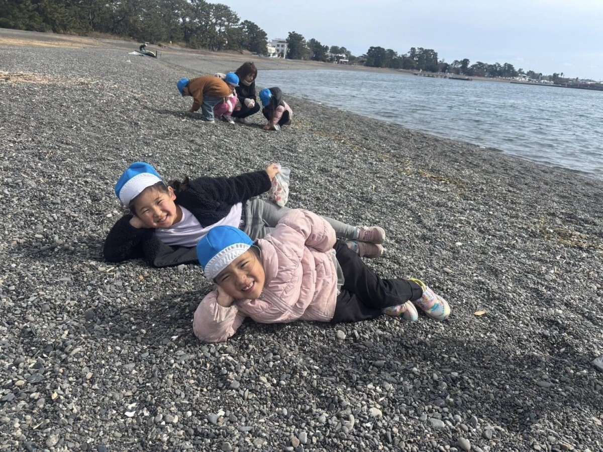 今日はみんなが楽しみにしていた遠足!出発前からウキウキワクワクな様子なあお組さん。バスの中でもお話しが盛り上がっていました。公園に着くと、きい組さんと手を繋ぎ公園内を散策したり、遊具で遊んだり、、、。お家の方が作ってくれたお弁当も、とっても嬉しそうに食べていました♪公園でたくさん遊んだあお組さんですが、海についても元気いっぱい!綺麗な貝殻を探したり、波際で遊んだりしていました。楽しいことがたくさんな1日だったので、ぜひお家でもお話を聞いてみてくださいね♪