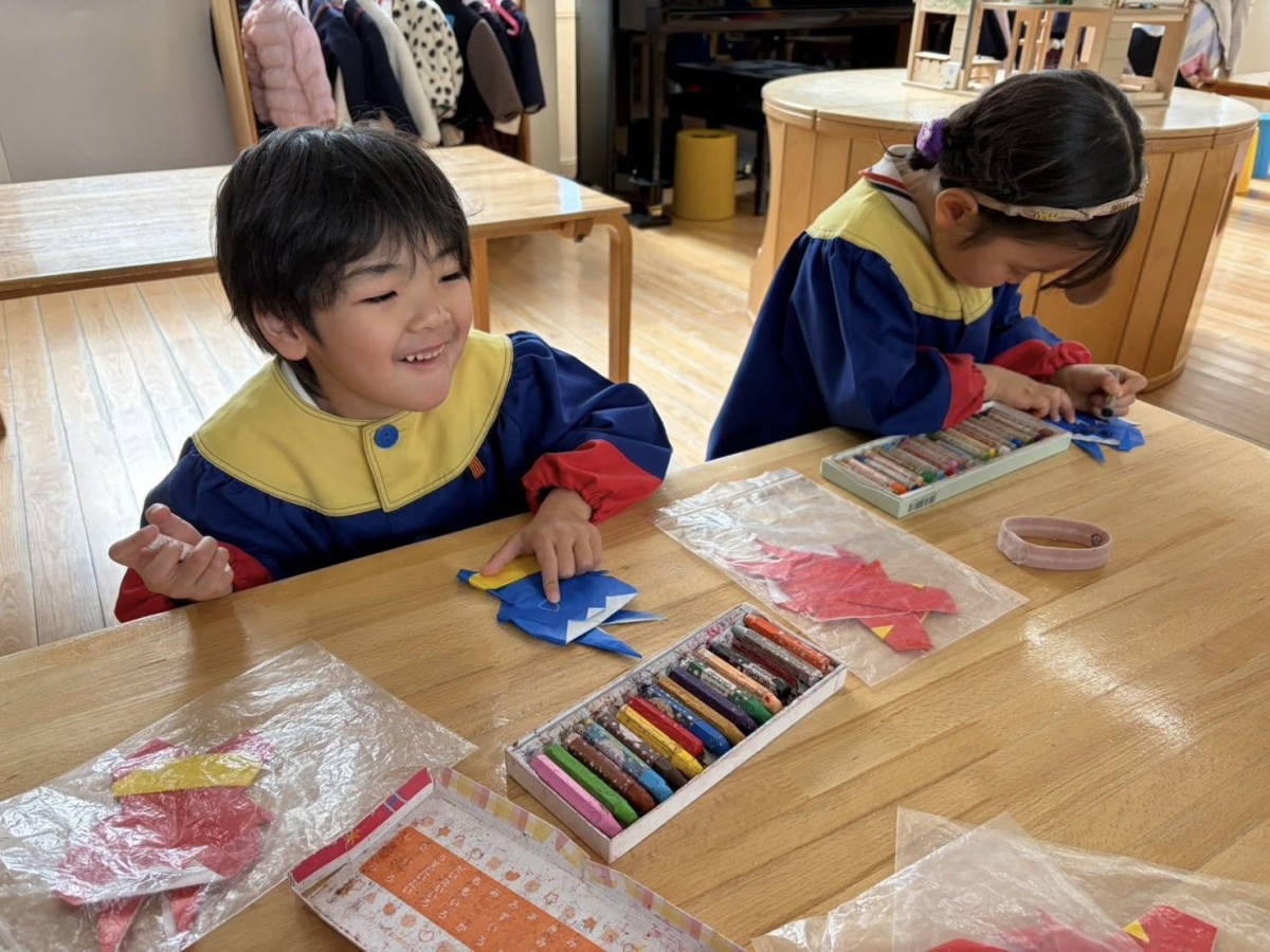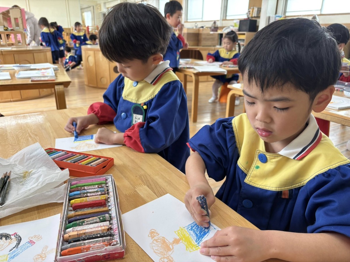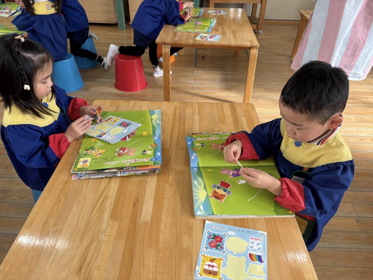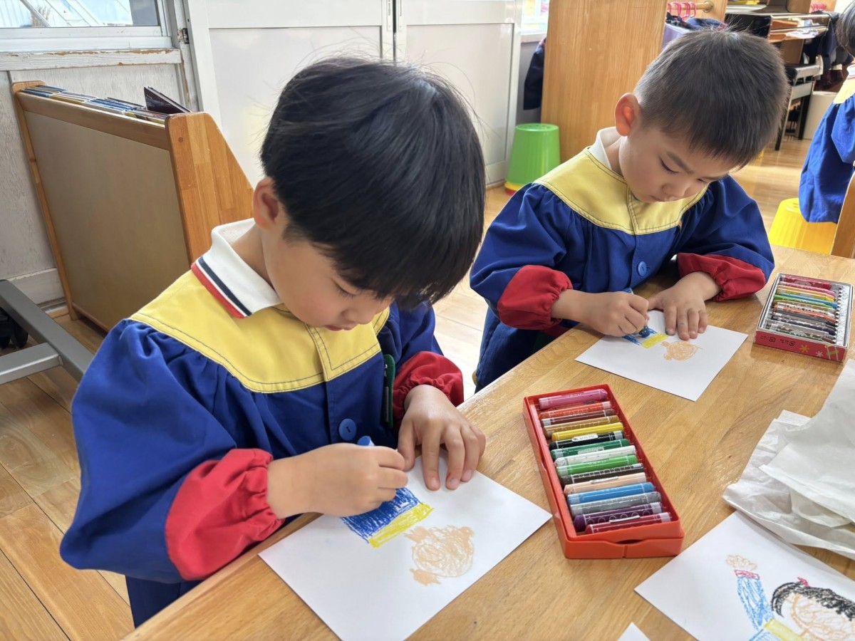今日は午前中に生活発表会のお遊戯の練習をして、そのあとは凧の制作の続きを行いました。凧の塗り絵は、一人ひとり配色のこだわりがあり、どの色にしようか悩みながらも楽しんで取り組むことができました☆