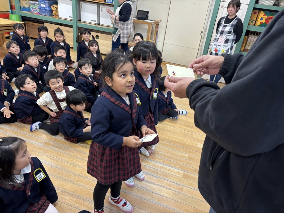 明けましておめでとうございます。 お正月休みも明け、久しぶりの登園のきい組さん。お休みにあったことを楽しそうにお話ししてくれました。午前中は発育測定をしたあと、月刊誌を読みました。凧のシールを上手に貼っていました。 午後は園庭遊びから帰ってきたあとは、お部屋で福笑いやカルタなどで遊びました。先生とルールを確認しながら楽しみました。 年賀の式にも参加し、父母会さんからのお年玉をいただき、「早く帰って開けるの楽しみ♪」とニコニコのお友だち^ ^ 本年もよろしくお願い致します☆