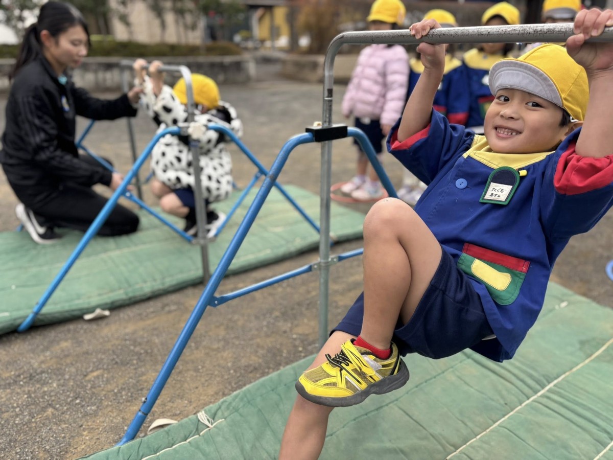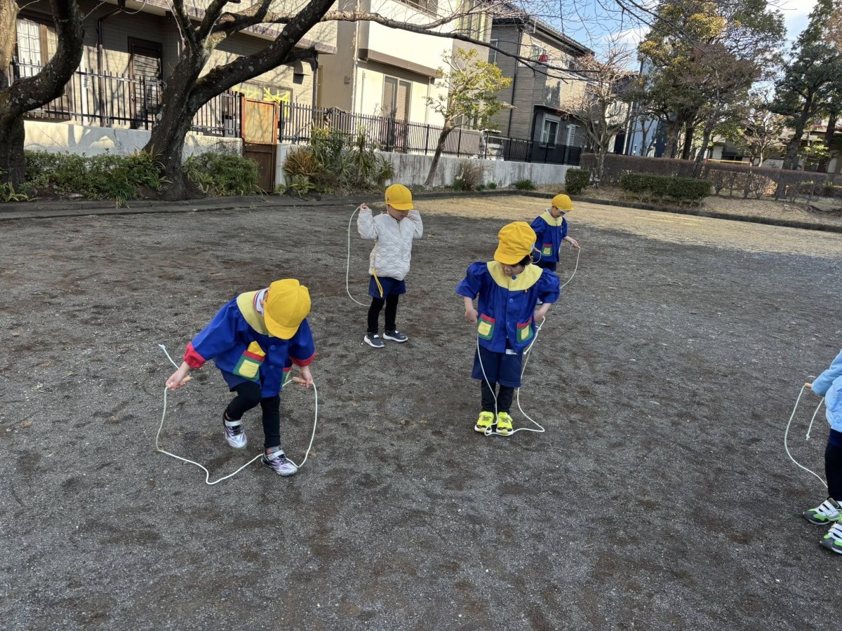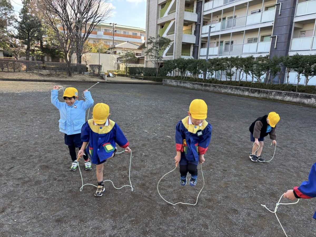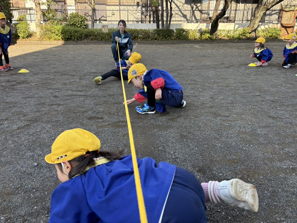 お休みだった子も徐々に復活してきて、賑やかなきい組さんに戻ってきました。午前中は体育遊びがあり、鉄棒や縄跳びの練習をしました。縄跳びは苦戦しながらも、先生のお手本をよく見ながら一生懸命取り組んでいました。最後は長縄を跳んだりくぐったりするゲームを楽しみました☆