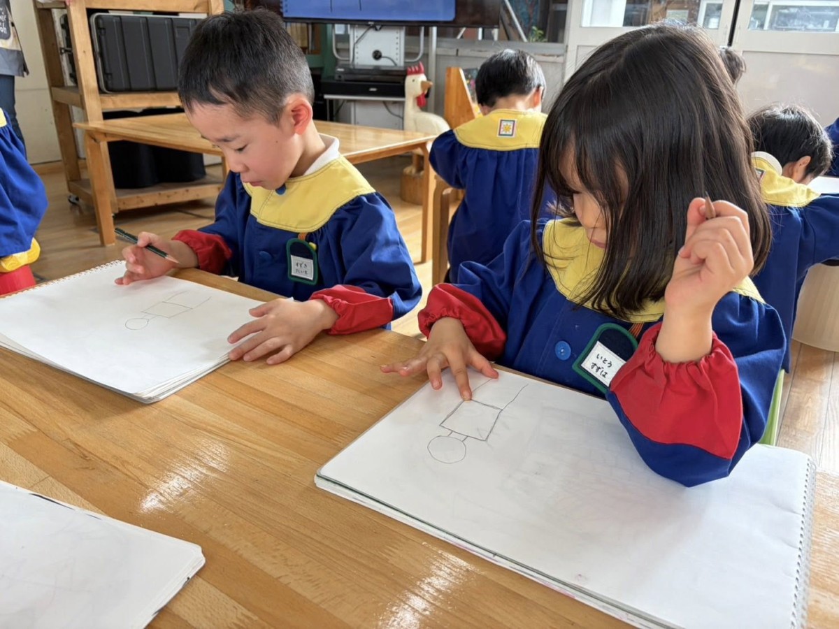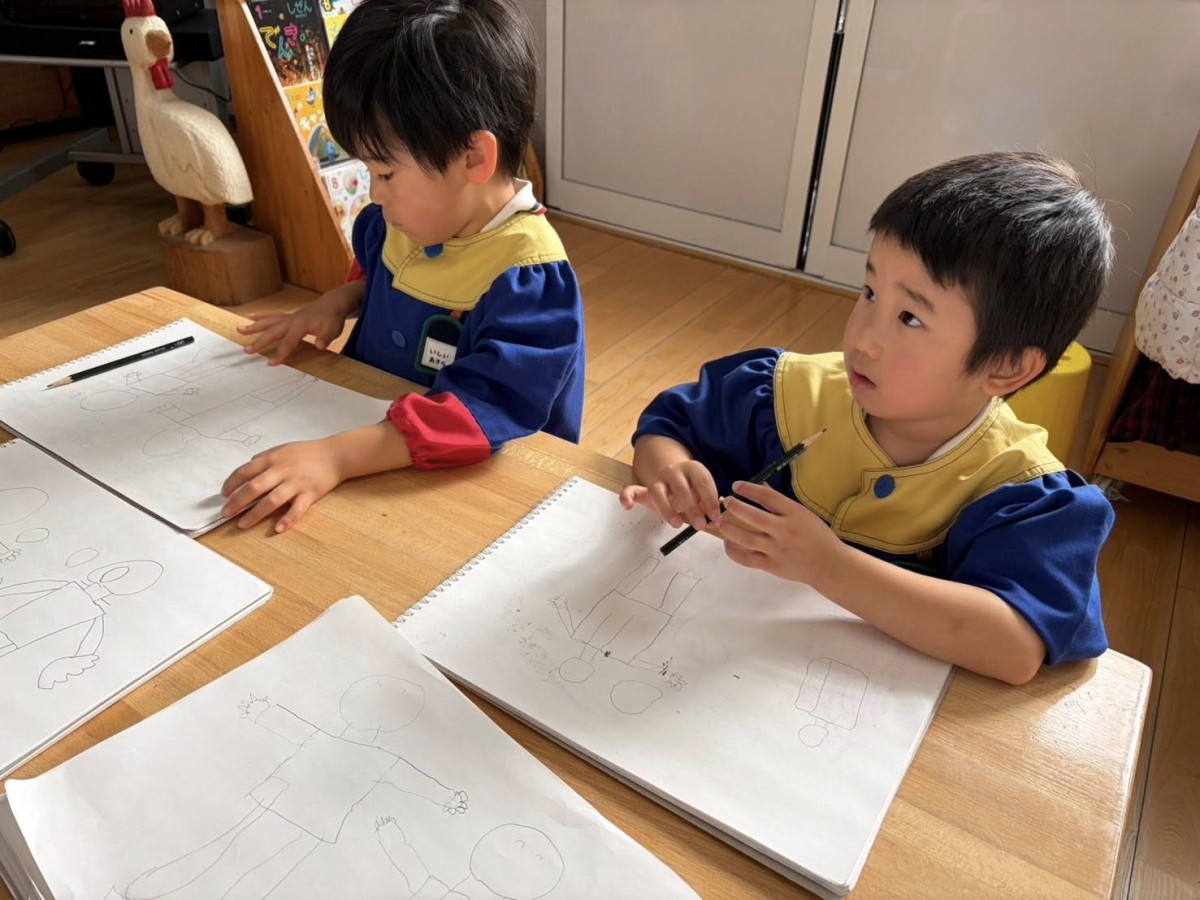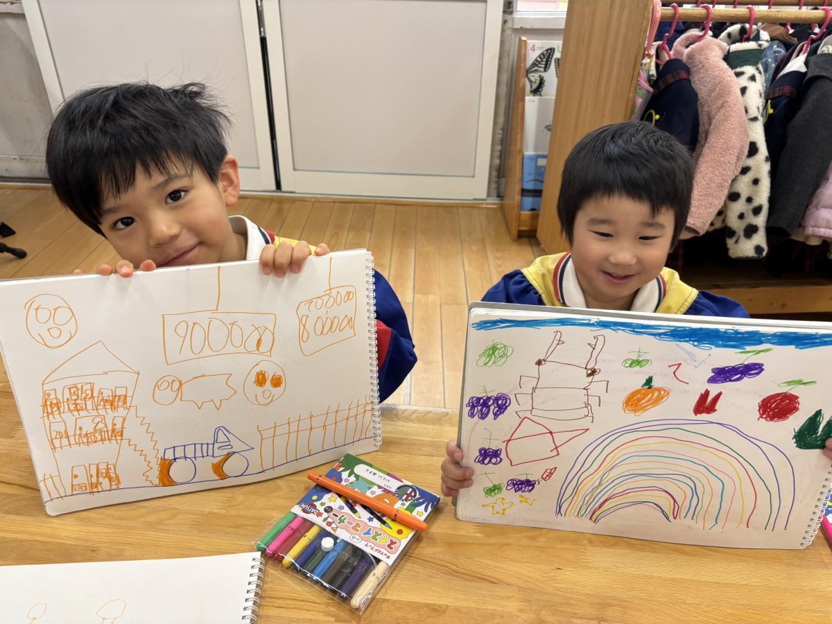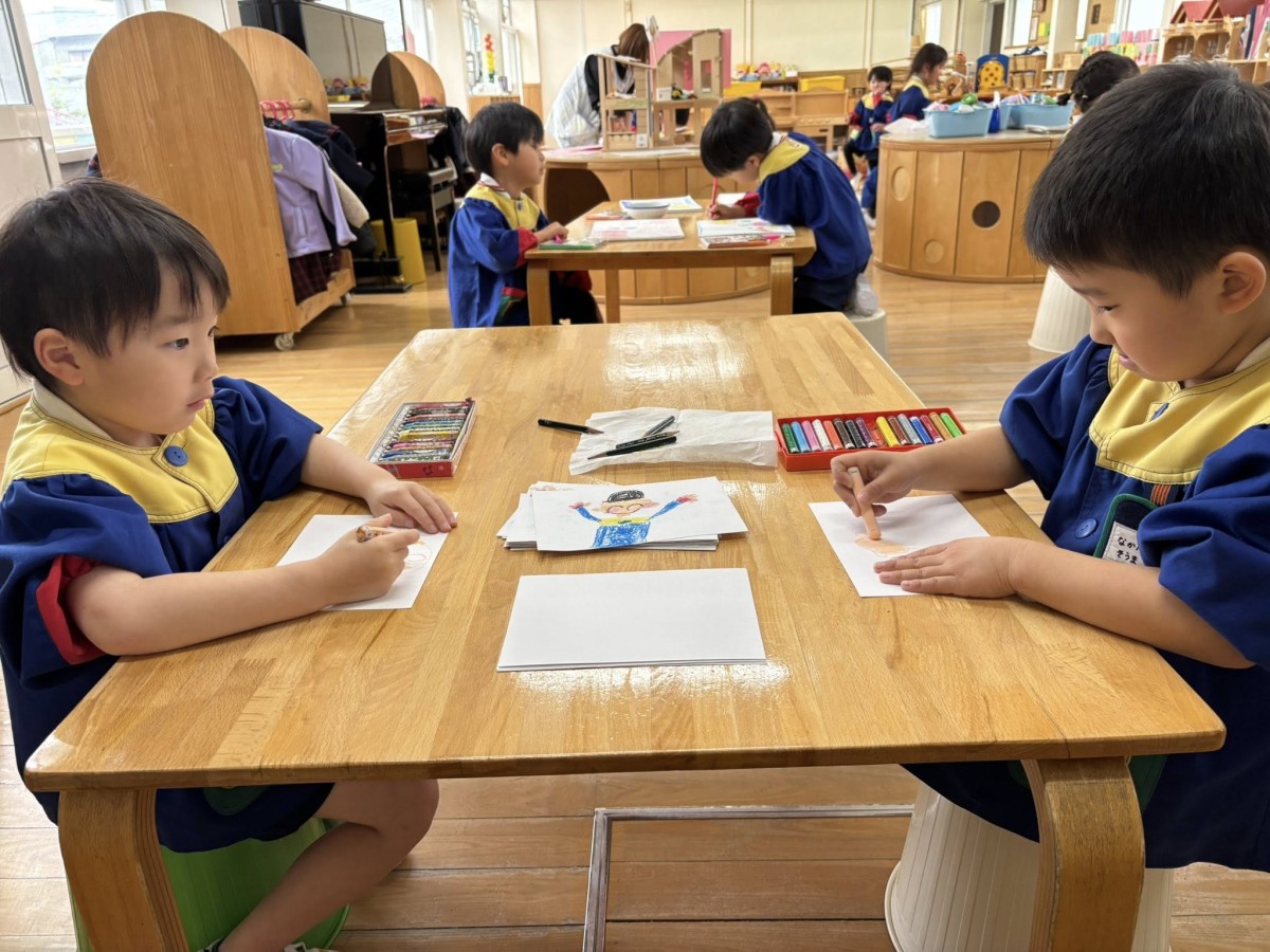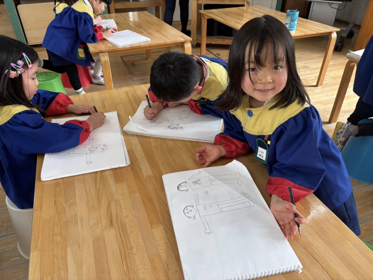 今日はオペレッタの練習をしたあと、絵の練習をしました。前回と同じく人を描きましたが、前よりもバランスよくできていたように感じました!午後はひらがなのお勉強と、生活発表会の歌の練習をしたあと、園庭に出ました☆