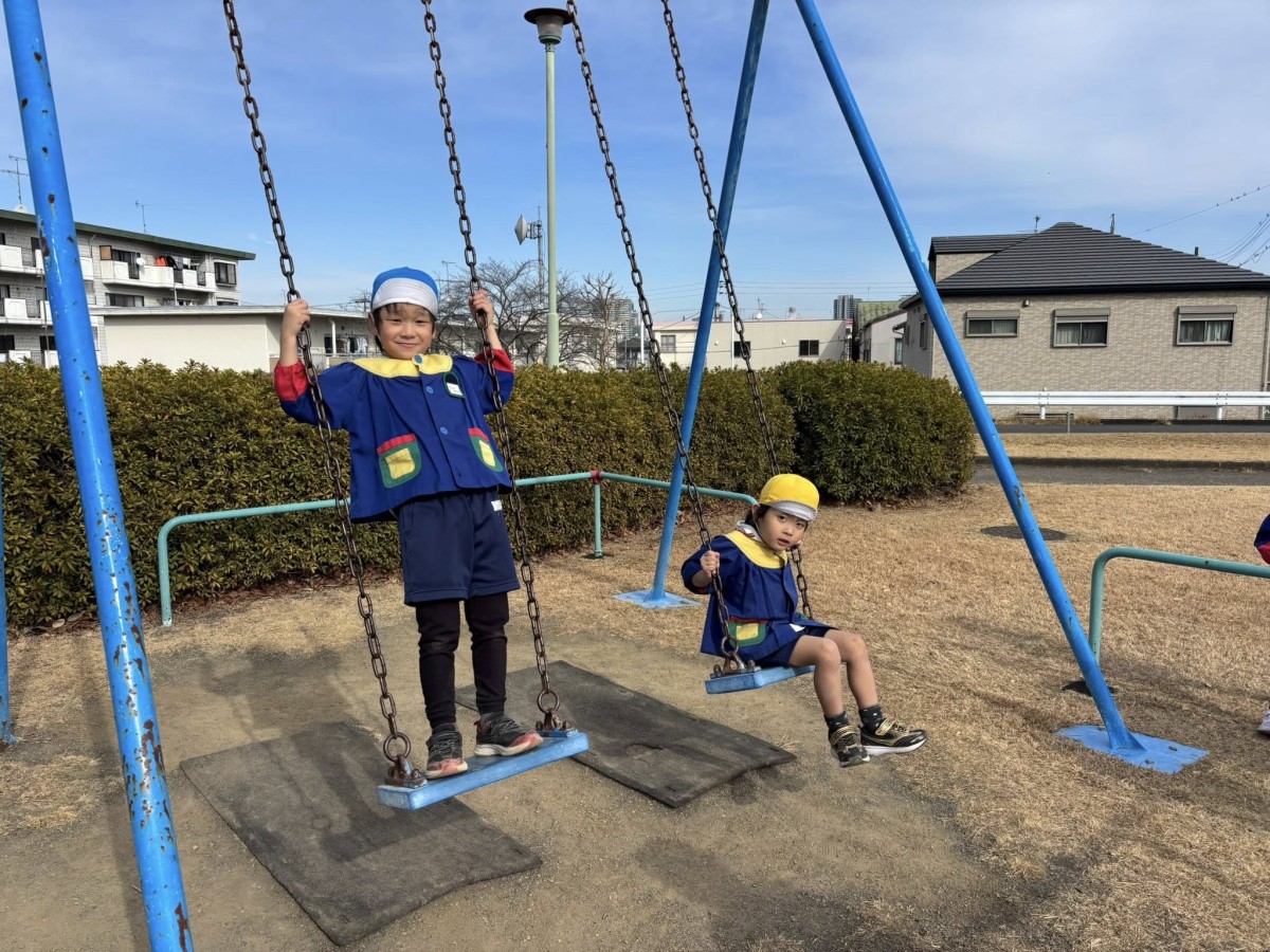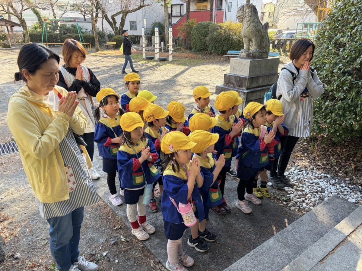 | 今日は午前中、お誕生会がありました。1月にお誕生日を迎えるお友だちは、堂々とインタビューに答えてくれました!午後は八雲神社まで初詣に行きました。お参りをしたあとは、ジャングルジムやブランコで遊びました☆ |