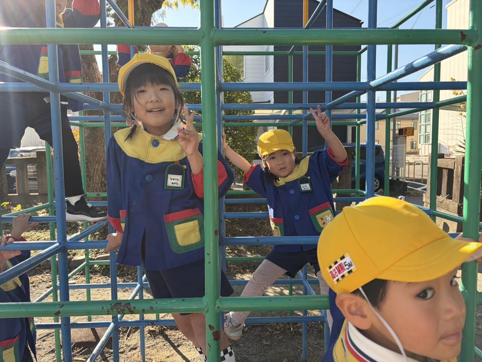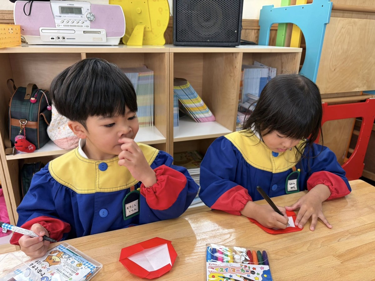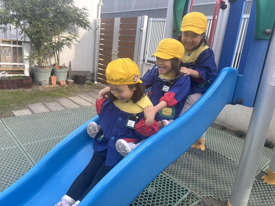 午前中はお部屋でワークをやりました。しっかりとお話を聞きながら真剣にワーク学習を行うことができました。午後はお部屋で折り紙などで遊んだ後園庭で遊びました。何人も列になって遊具で遊びながら移動して遊んでいました。