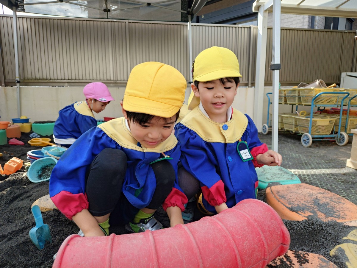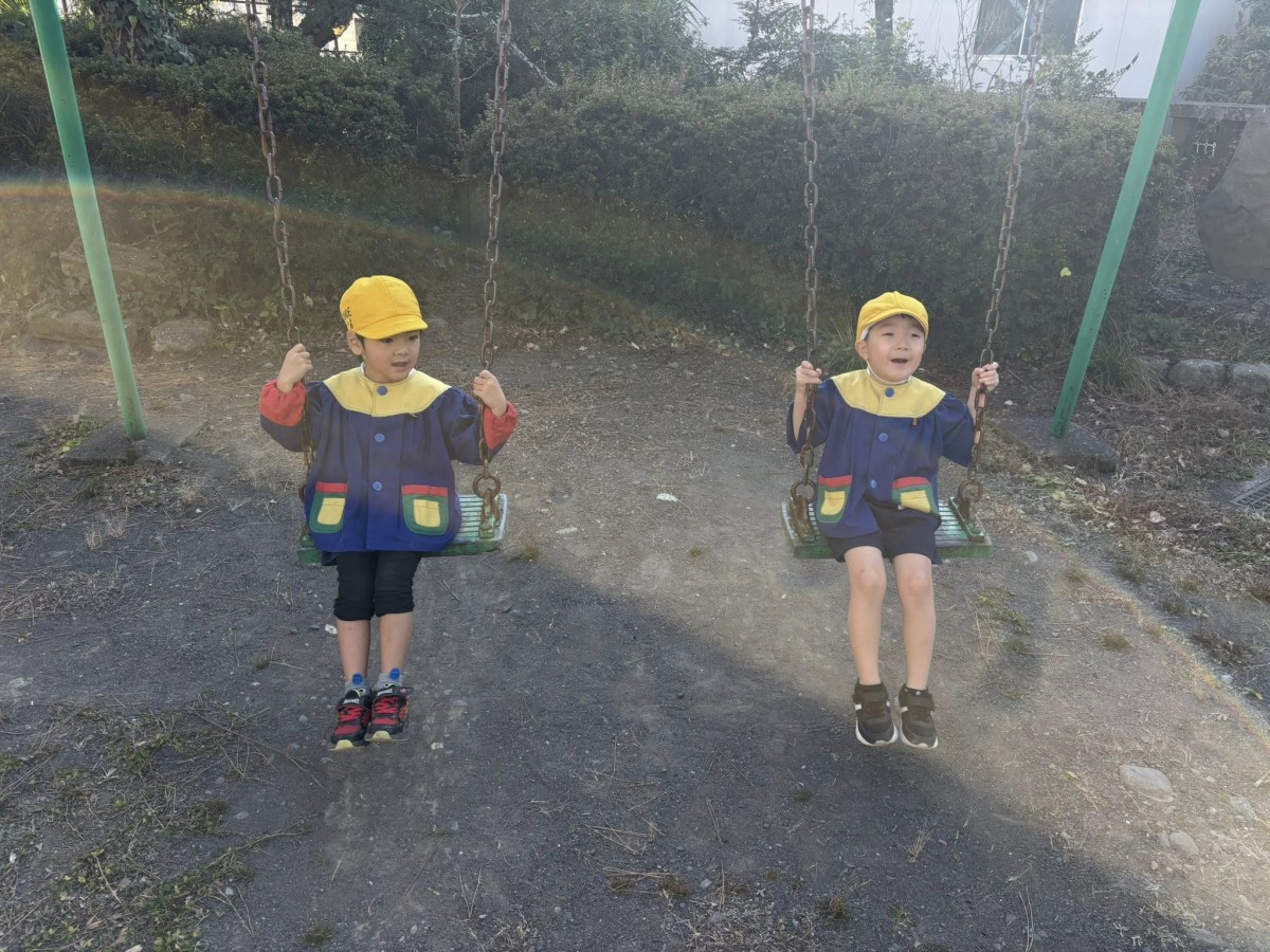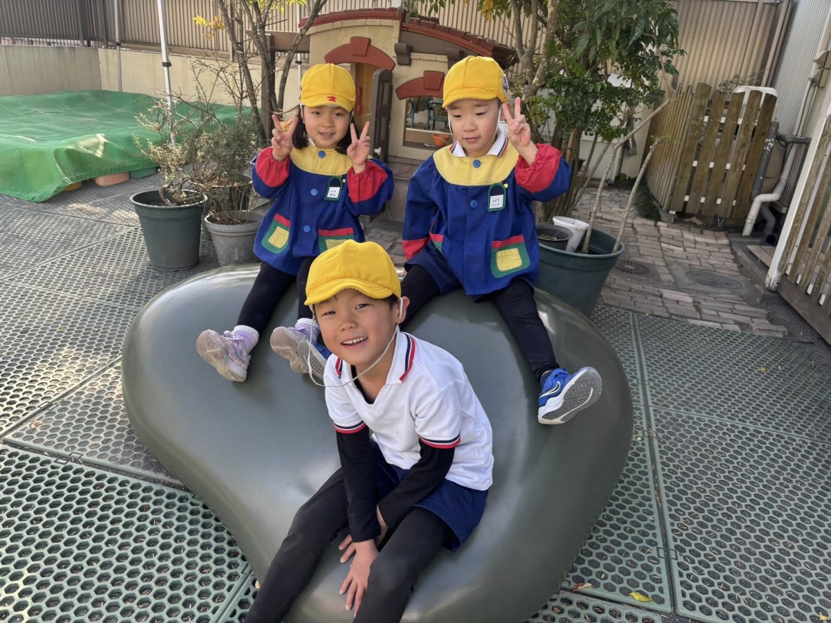 | 午前は発育測定とワークをやりました。「大きくなったかなー?」とそわそわした様子で測っていました。ワークは先生のお話しをよく聞きながらお友だちと協力して進めていきました。午後は楽しみにしていた園庭遊び!お友だちと落ち葉や石でおままごとをしたり、大型遊具で遊んだりしました! |