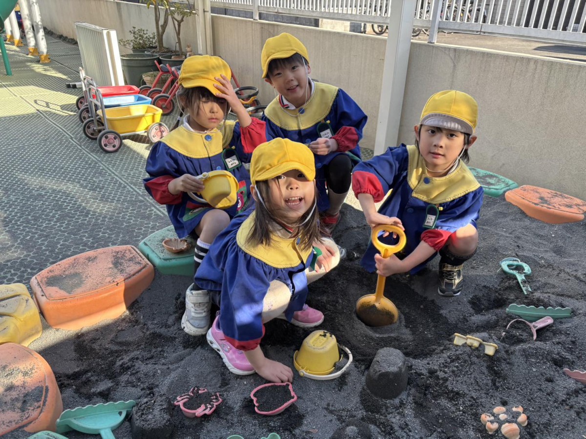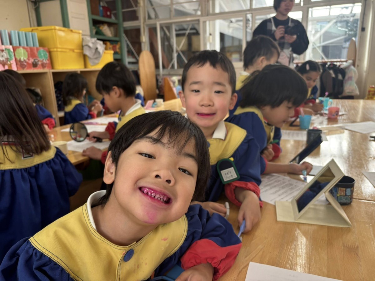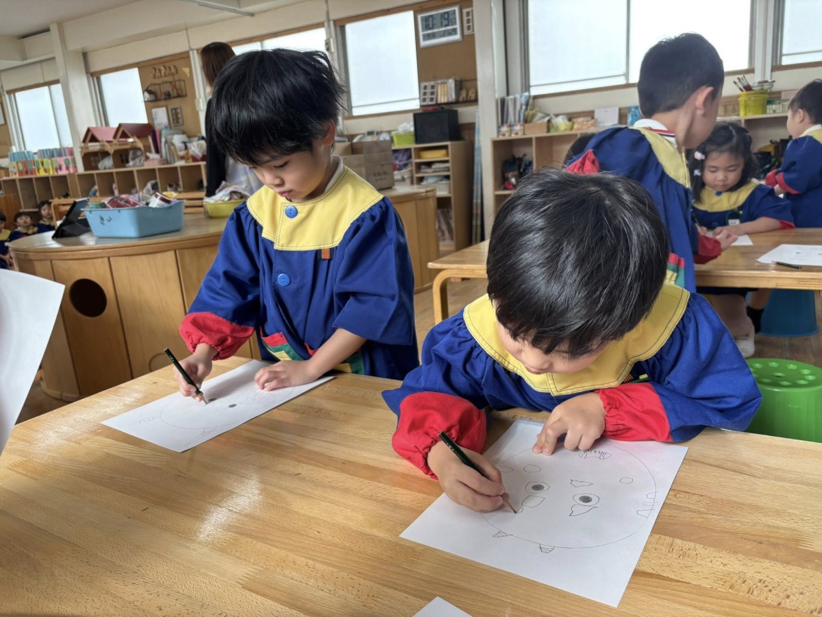 今日は午前中、鬼のお面のデザイン画を描きました。表情はどうしようか、顔の模様はどんな感じにしようか、と考えながら鉛筆描きをし、次にクーピーで色付けをしていきました。これを元に、本番はどんな鬼ができるのか楽しみです^ ^午後は粘土遊びをしたあと、ひらがなのお勉強をし、園庭に出ました☆