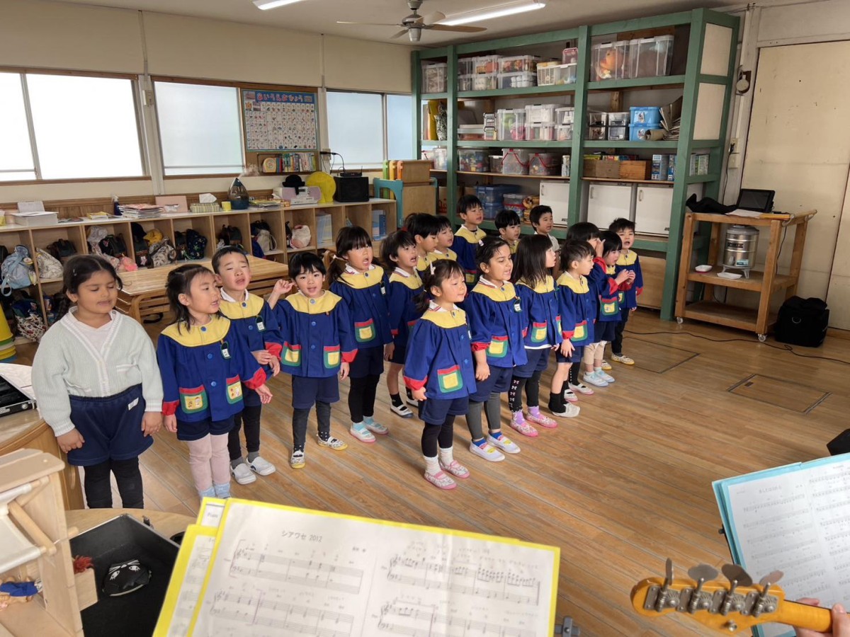 今日は生活発表会の歌の練習をしました。先生たちのバンドに合わせて、優しく歌うことができました。午後は折り紙やお絵描きをして過ごしました☆