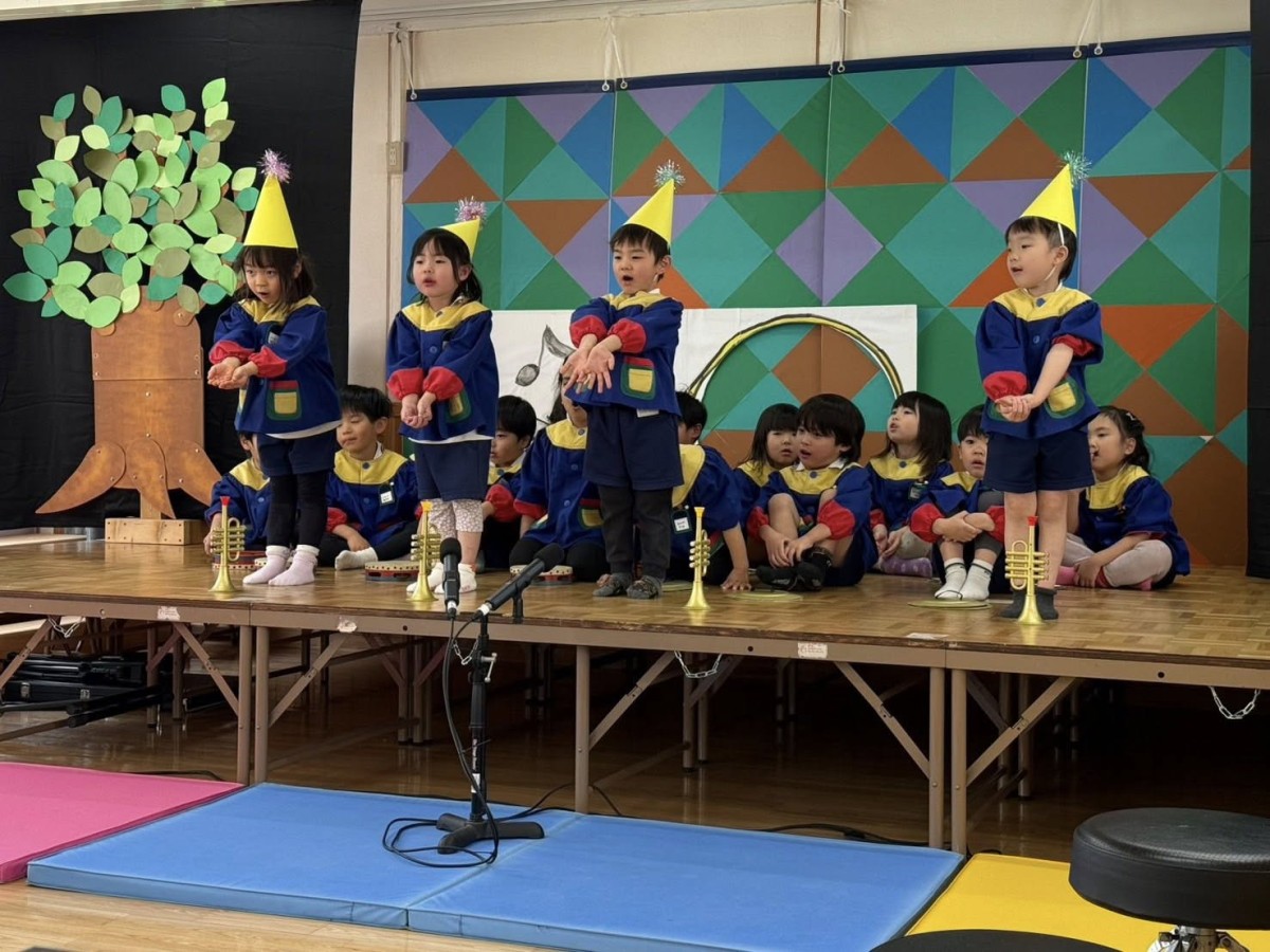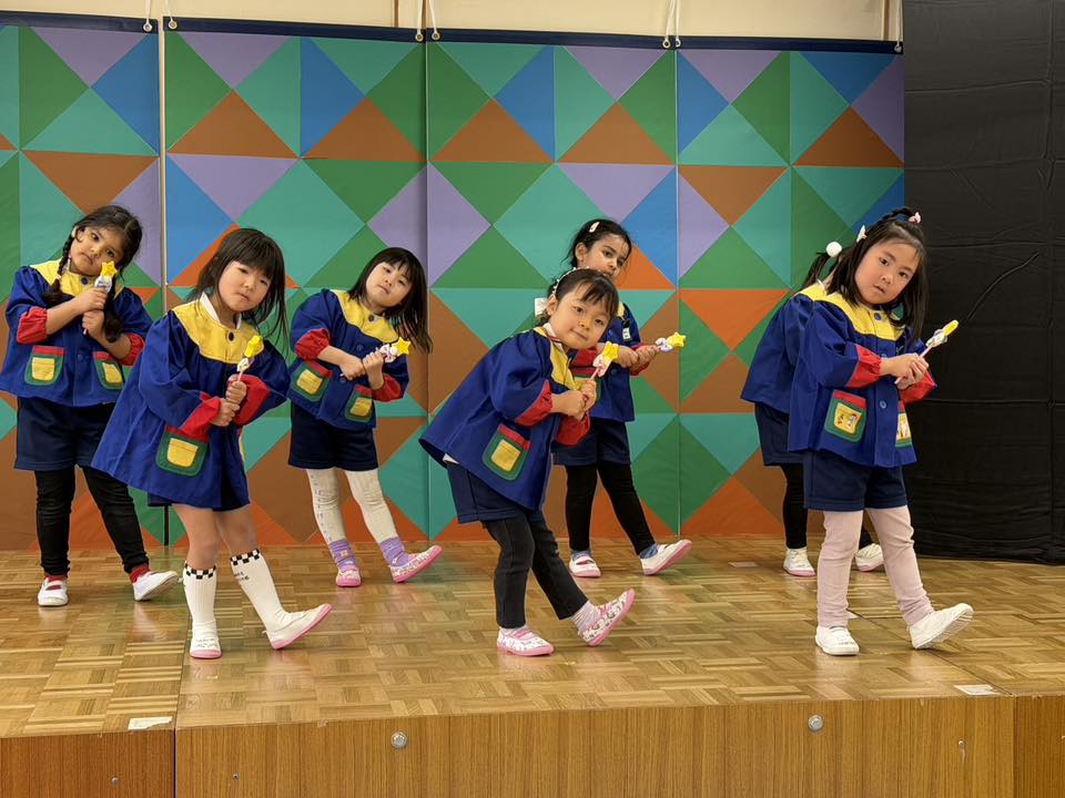 | 今日は、ずっと楽しみにしていた生活発表会本番の日!たくさんのお客さんと、いつもと違う雰囲気に、少し緊張気味のお友だちでしたが、舞台の上では堂々と歌ったり踊ったりする姿がとてもかっこよかったです。舞台から降りると「楽しかったー!」という声もあり、頼もしさまで感じました。保護者の皆さま、ご参加いただきありがとうございました☆ |
