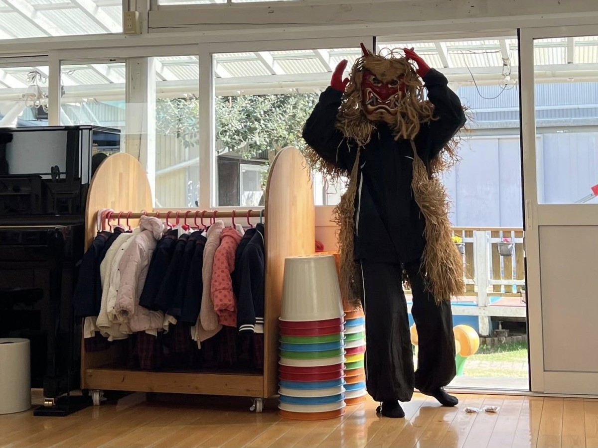 | 今日は午前中リトミックがありました。節分にちなんだ歌や手遊びを楽しく歌っていました♪午後は節分の会を行いました。「鬼は外!福は内!」と豆をまいて鬼を退治しました。1年、元気に過ごせますように☆ |