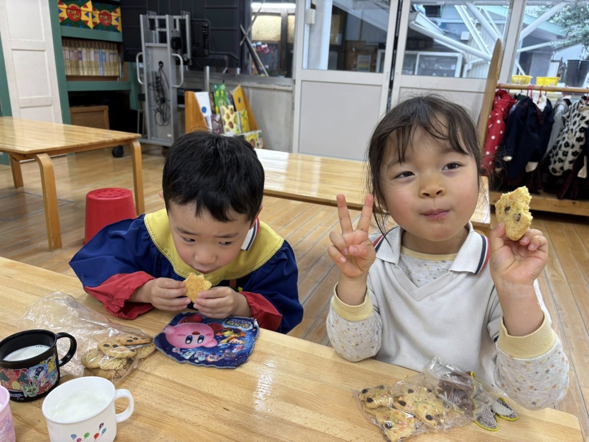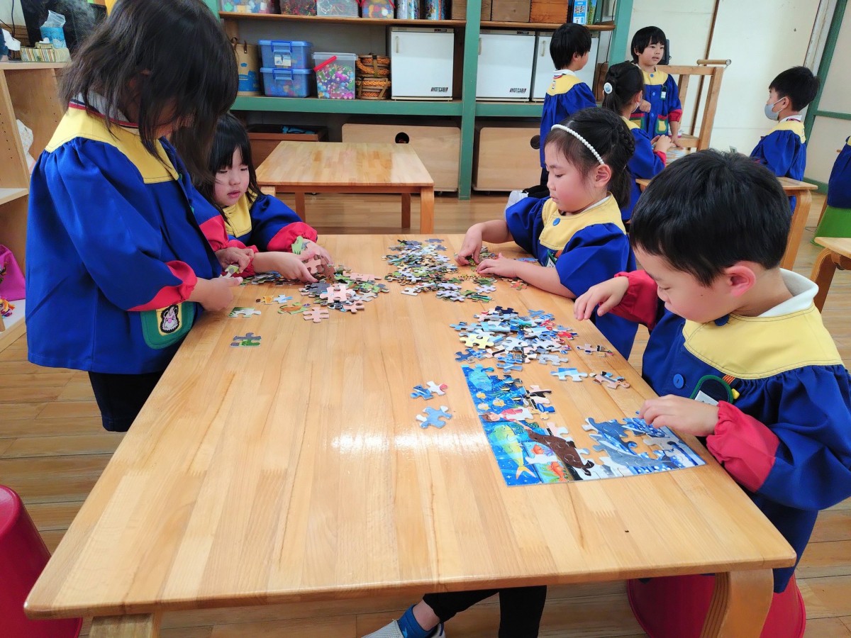 午前はお部屋で過ごしました。お友だちと協力しながらパズルを組み立てていきます。午後は月の制作で折り紙で栗をおりました。その後は園庭でじゃんけん列車で遊びました。先生からルールを聞き、楽しく遊ぶことができました!