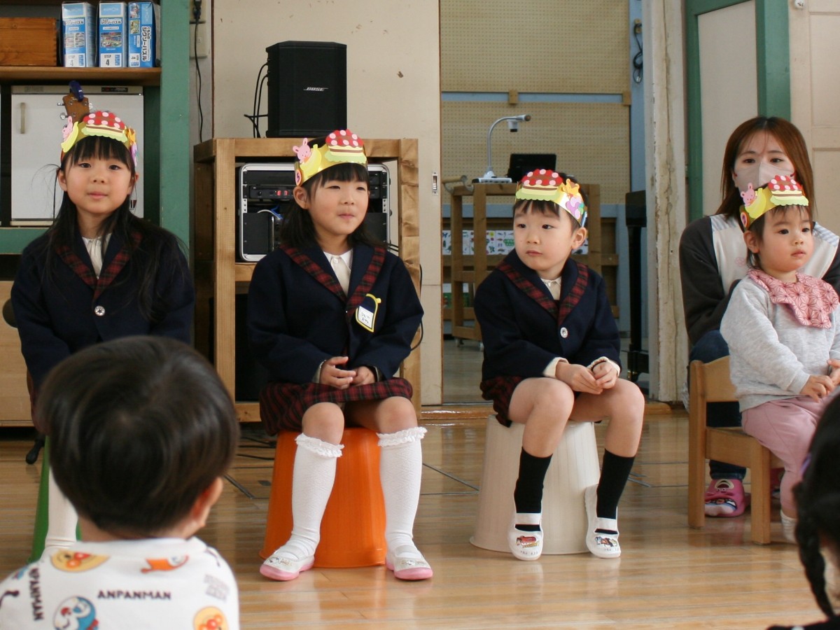 今日は2月のお誕生会がありました。きい組さんの2月うまれのお友だちは、2人とも、とても上手にインタビューにこたえてくれました。先生たちからのプレゼント「せんたくかあちゃん」のパネルシアターを、ピアノの音に合わせて歌ったり、手遊びをしたりしながら楽しく観ることができました☆