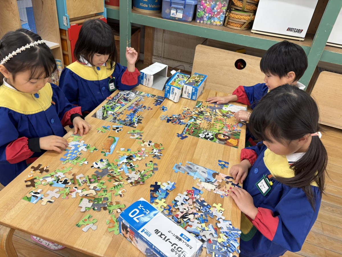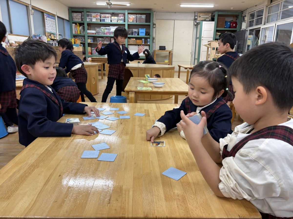 今日はパズルやメモリーをして過ごしました。ピースの数の多いパズルも、集中して完成させていました!午後は園庭に出たあと、ひらがなカードで楽しくお勉強をしました☆