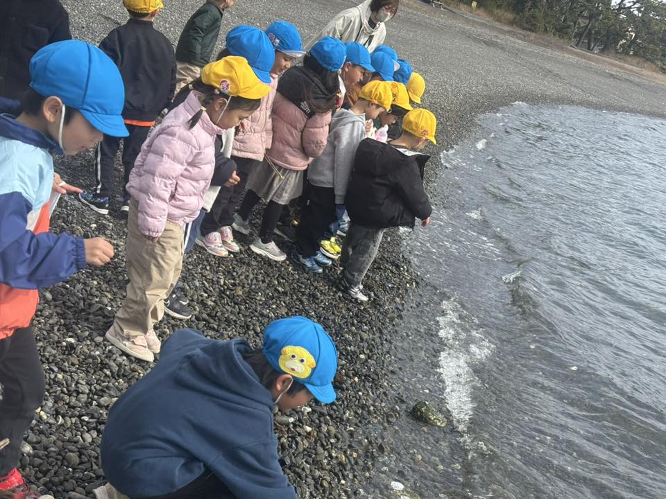 | 今日はみんなが指折り数えて楽しみにしていた、遠足に行きました。清水の船越堤公園では、鳥や花を観察して春の訪れを感じ、そのあとは遊び場に行き、大きな滑り台やシーソー、ブランコなどいろいろな遊具で遊びました。広場でシートを広げてみんなで食べたお弁当は、とってもおいしかったね!次に、再びバスに乗って三保の海岸まで移動しました。綺麗な貝殻を集めたり、魚を見つけたり、海の波を眺めたりして過ごしました。帰りのバスでは、遊び疲れてぐっすりと眠る姿もありました^ ^楽しい思い出ができたね☆ |