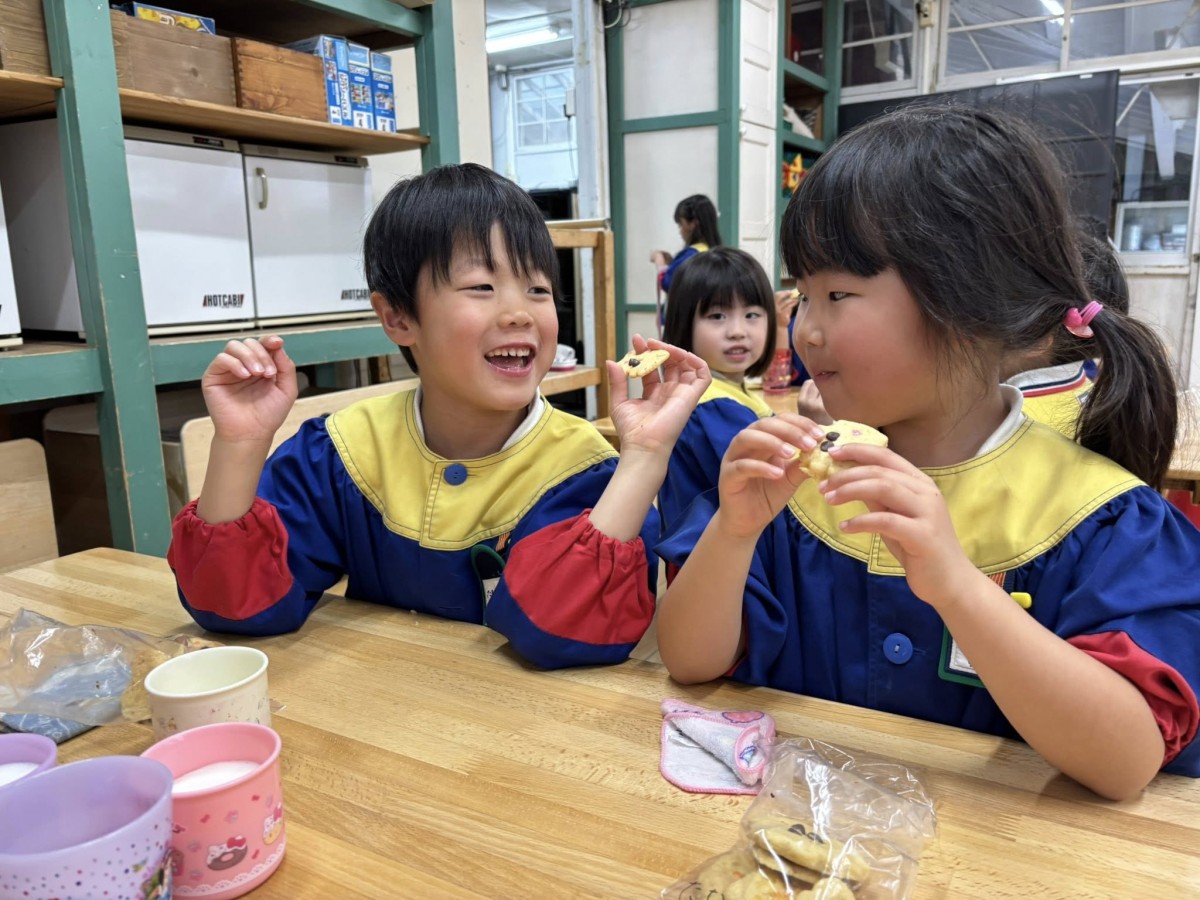 | 今日は午前中、オペレッタの練習をしたあとリトミックに参加しました。ピアノの音楽に合わせて楽しく体を動かしました♪午後は園庭で遊びました!おやつはふかしいも。ホクホクのさつまいもを、「あま〜い♡」とおいしそうに食べていました☆ |