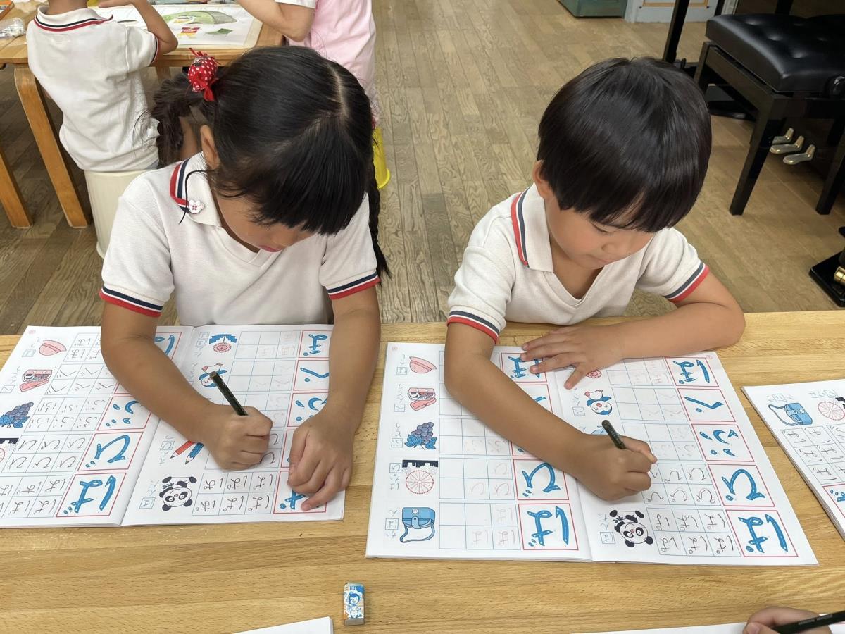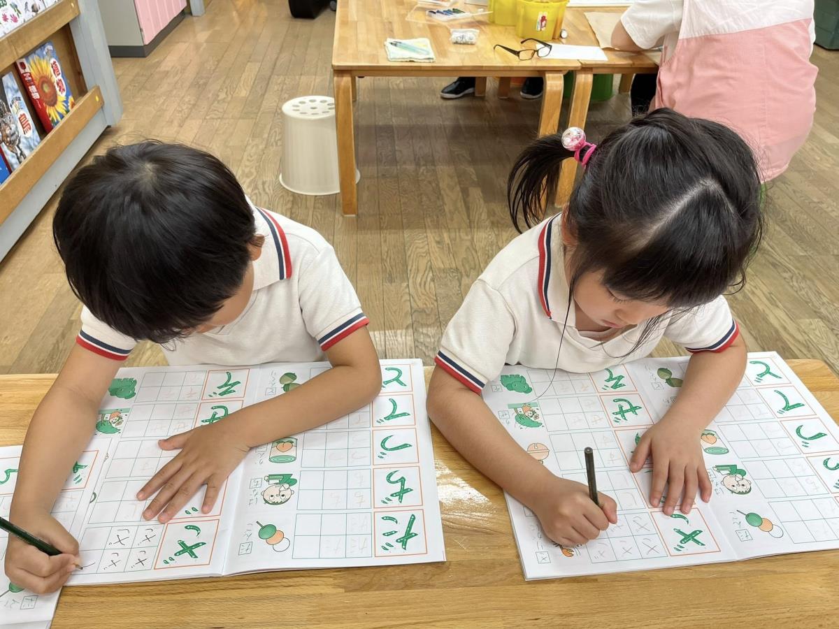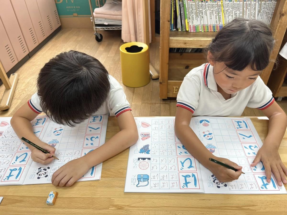 | 午前はまなびキッズでお勉強をしました。ゆっくり丁寧に書くことを心がけて真剣に取り組んでいました。午後は園庭でたくさん遊びました! |