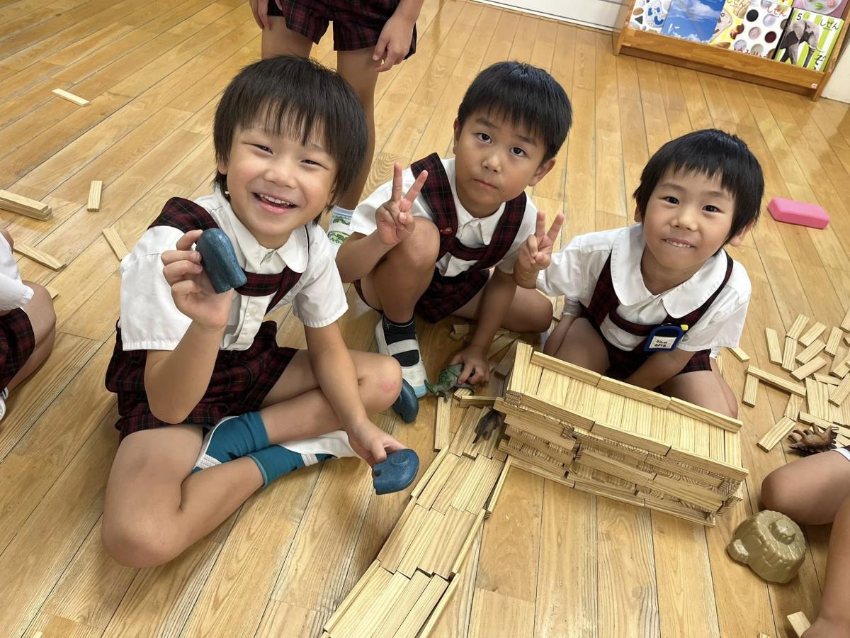 午前中は積み木で遊びました。ドミノをしたり、お友だちと一緒に作品を作ったりと楽しそうでした。午後は、プールに入りました!宝探しゲームやビート板を使って泳ぐ練習、ワニさん泳ぎをして遊びました。