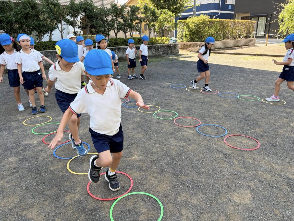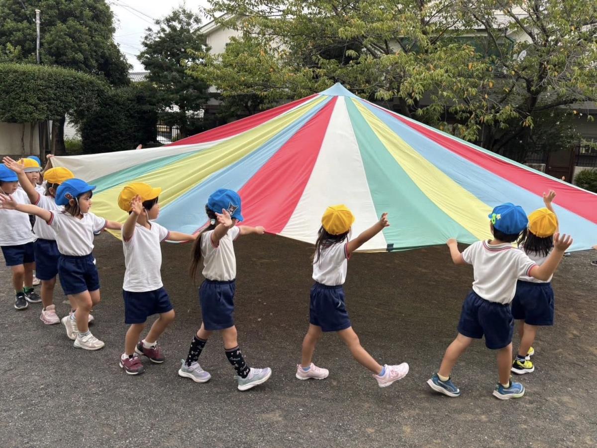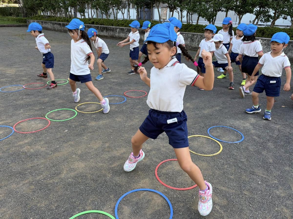 午前中はあお組最後のリトミックがありました。あか組さんの時からずっとみえ先生に教えてもらってきました。毎回楽しみだったリトミック、今回も、最初から最後までニコニコ楽しそうでした。午後は、フラッグの練習をしました。持ち方、立ち方、振り方など覚えて取り組みました。