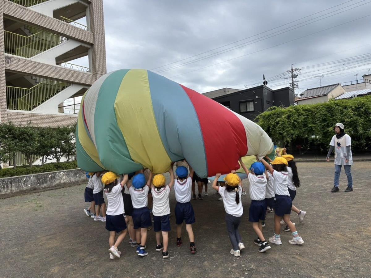 午前中は誕生会がありました。あお組さんからはお誕生日のお友だちはいませんでしたが、楽しみながらお祝いしていました。午後は、涼しかったので南公園へ!運動会の練習をしました。バルーンの練習をしたあとは、リレーをしてきました。
