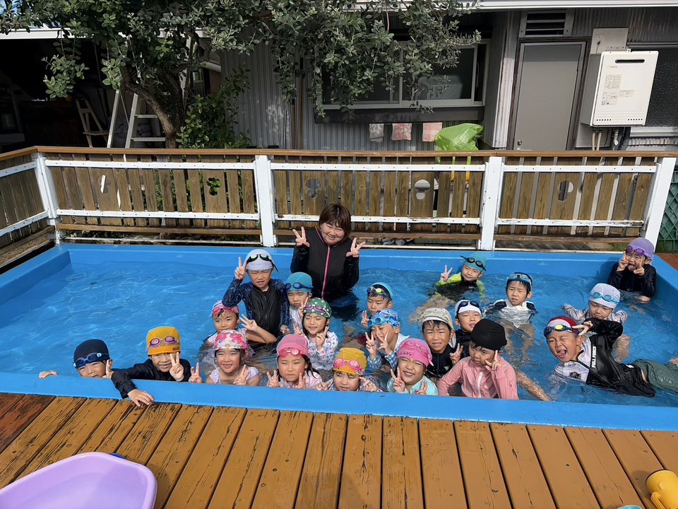 午前中は英語がありました。アルファベットを書く練習をしました。午後はプールに入りました。ビート板を使わずに泳ぐ練習をしました。ひじと膝をピッと伸ばして泳ぐ子やばた足をして泳ぐ練習をしている子がいました。保育園でのプールも残りわずか、、、。1回1回を楽しんでいきたいです。