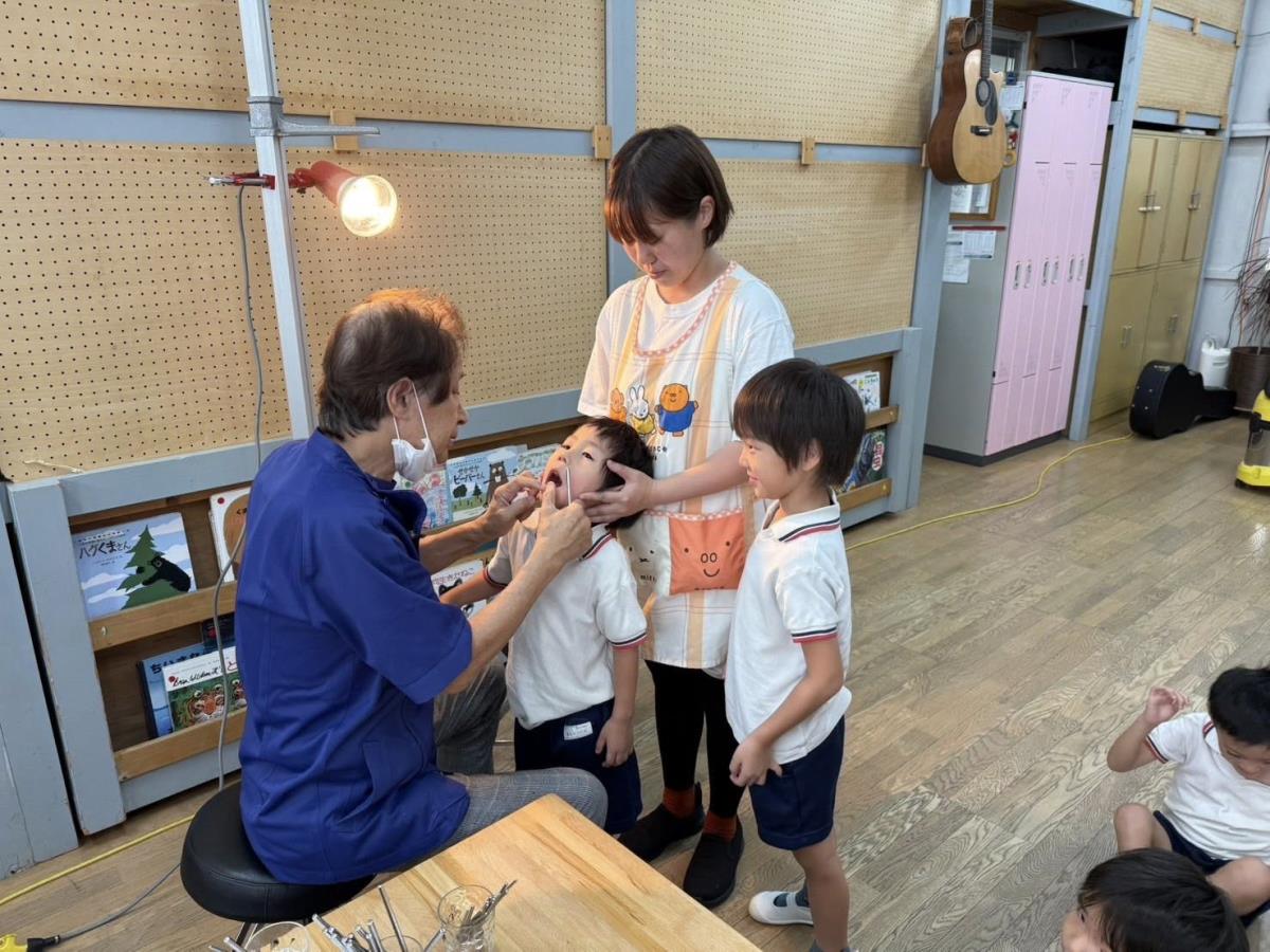 午前は体育遊びに参加しました。フラフープを使ってジャンプして進んだり、駆け足で進むのが難しかった様子でした。しかし、みんなわくわくした表情で何度も挑戦していました。午後は歯科検診でした。先生に「綺麗だね」と言ってもらうとにこにことお礼を言っていました。