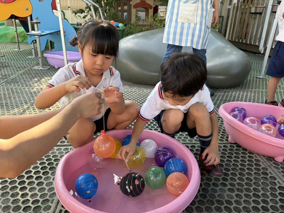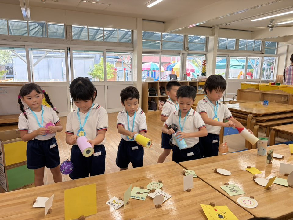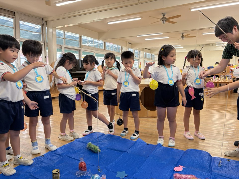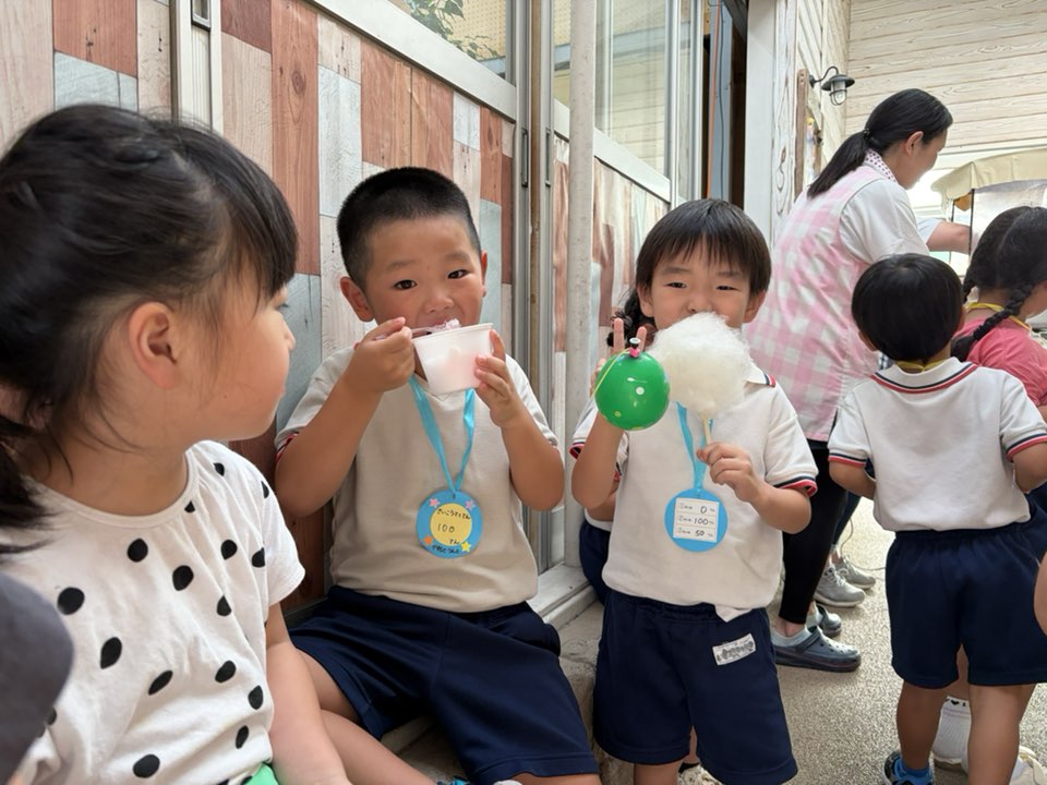 午前はお部屋でお勉強をしました。問題をしっかりと聞いて、こたえてくれます。困っているお友だちを見かけると「どこわからない?」と声をかけあっている姿を見かけます。午後はみんなが楽しみに待っていた秋祭りでした。盆踊りを楽しく踊った後は、かき氷や綿あめ、ヨーヨー釣り、魚釣りなどたくさん食べて遊びました!