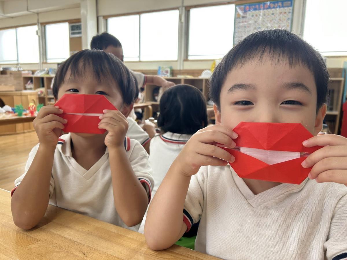 今日は月の制作で「ハチ」を折りました。初めて袋折りにも挑戦しましたが、先生のやり方をよく見て、上手に折ることができました。午後は園庭で遊びました☆
