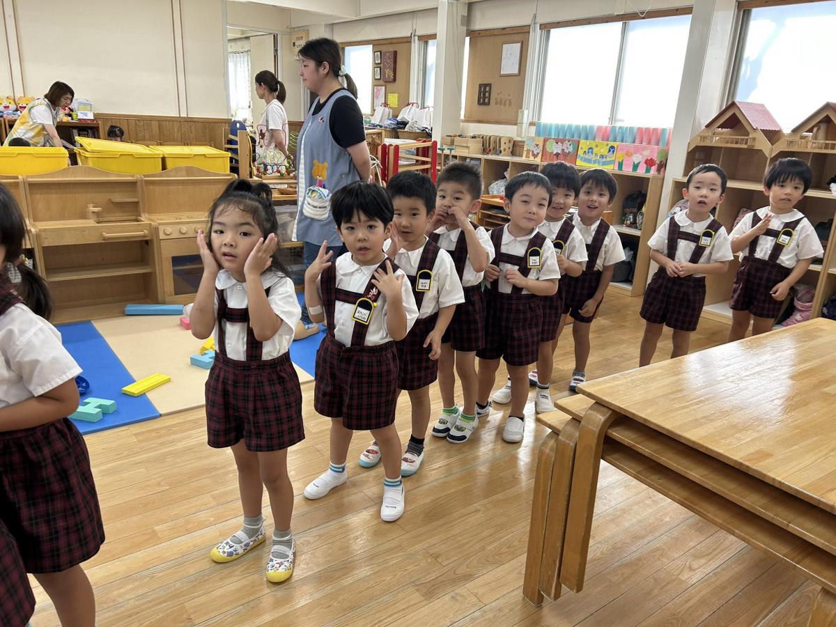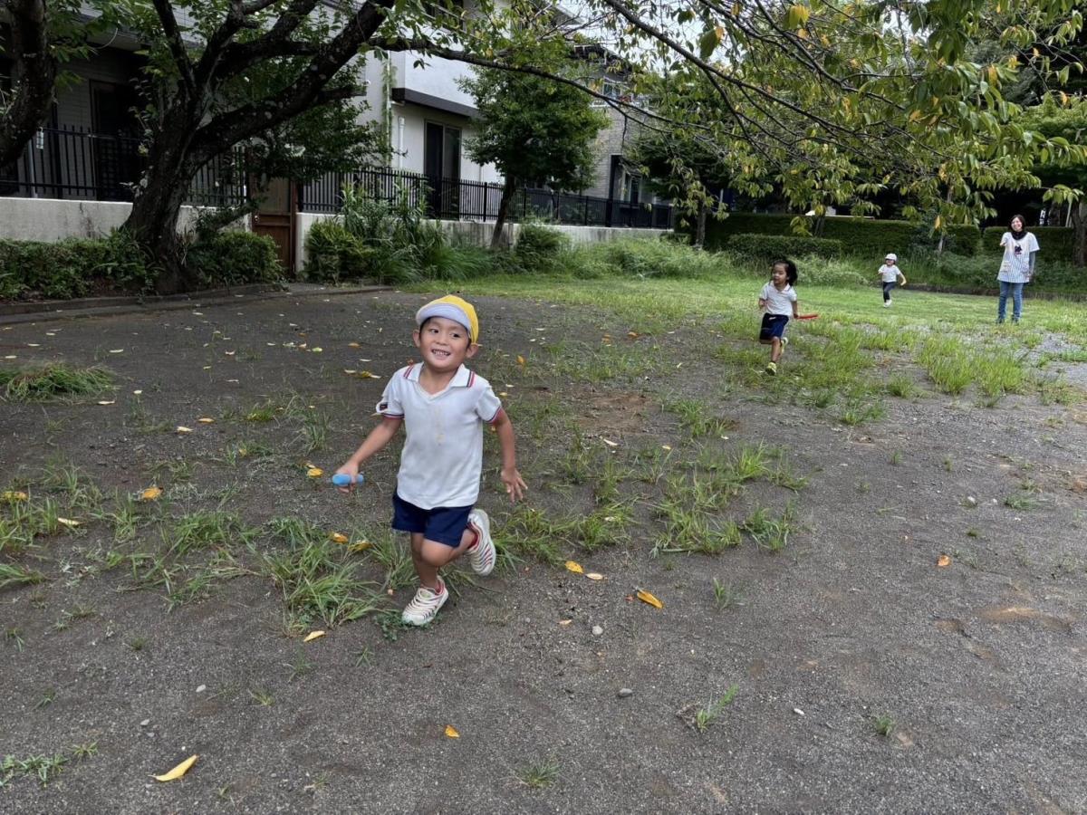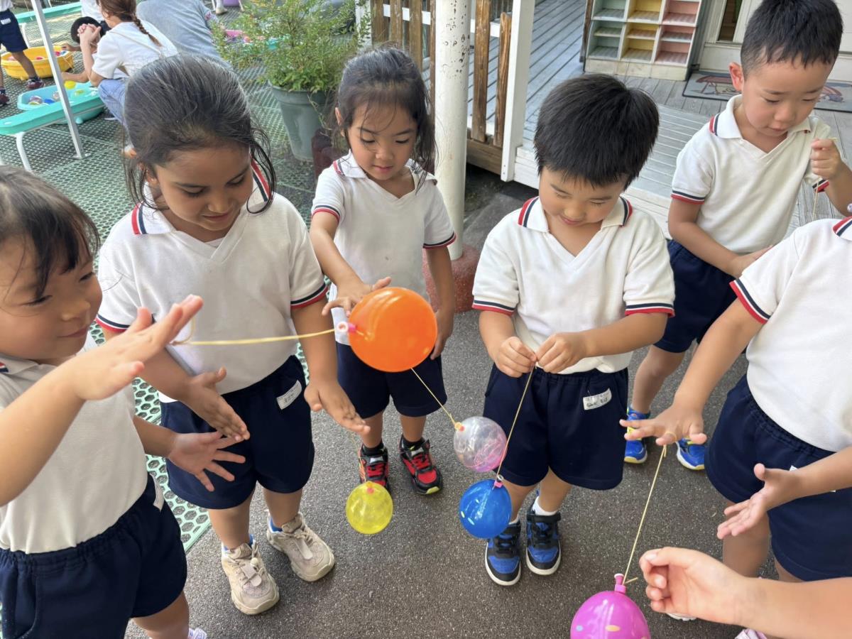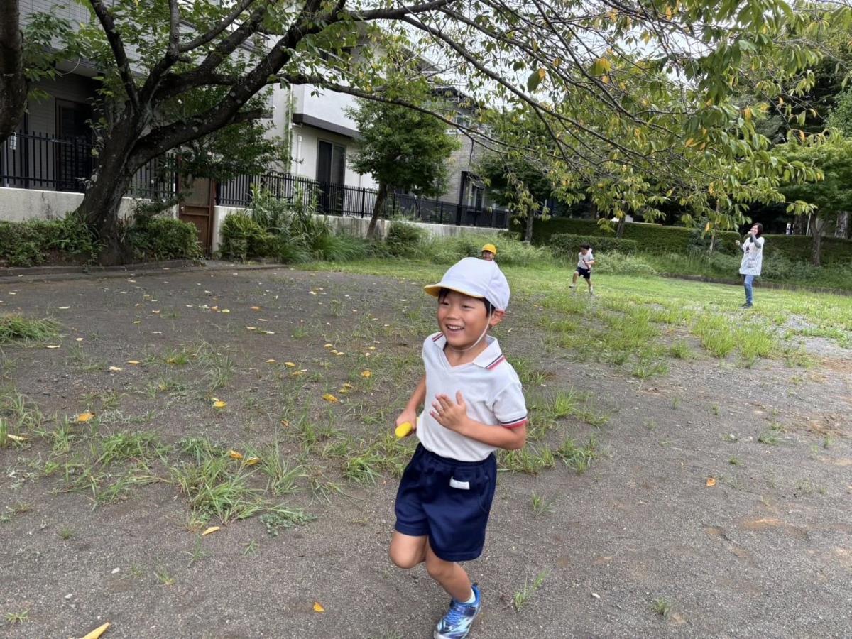 今日はお誕生会がありました。9月生まれのお友だちは、とても上手にインタビューにこたえてくれました。先生たちからのマジックショーのプレゼントを楽しんで観ていました!午後は涼しかったので、南公園で運動会の練習をしました。初めてのプレイバルーンでしたが、楽しんでおこなえました☆