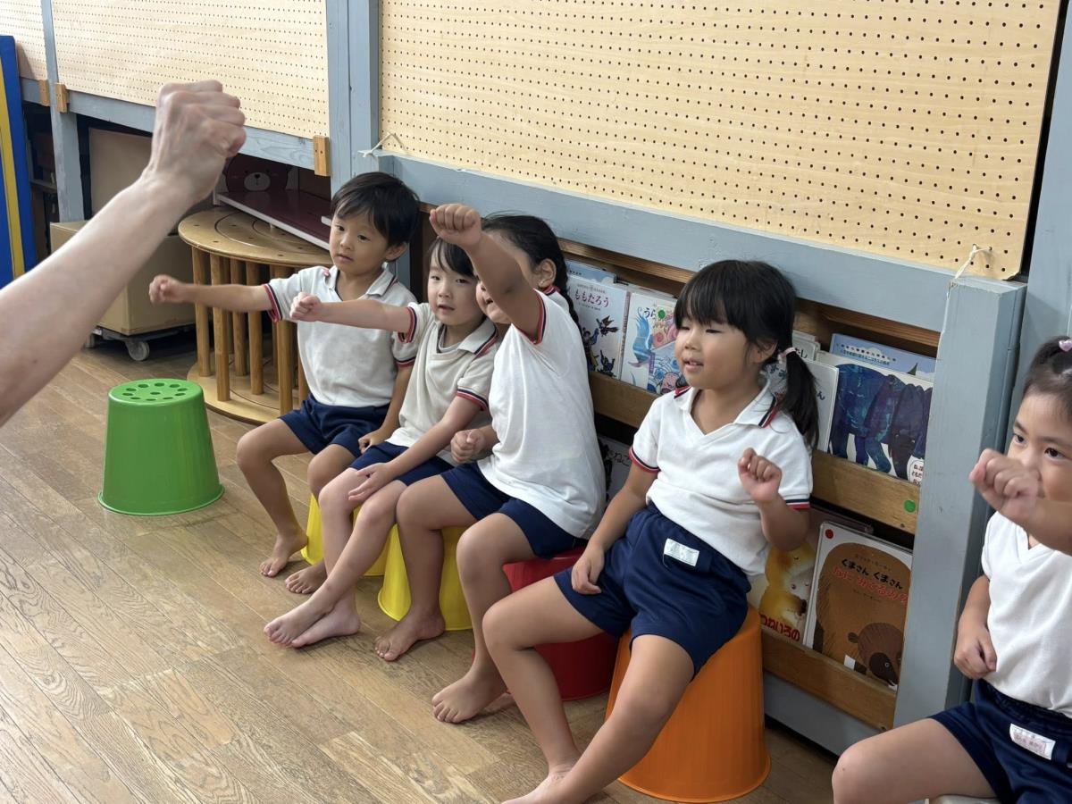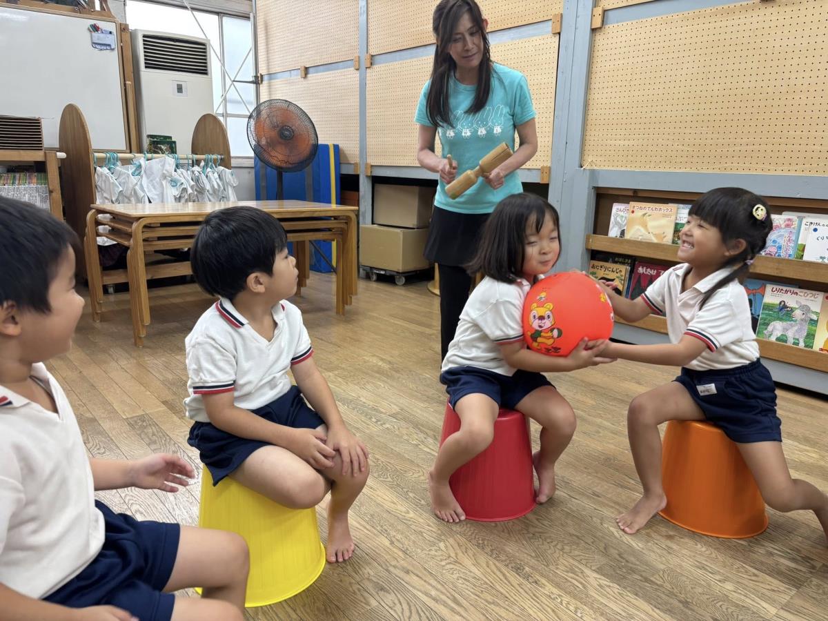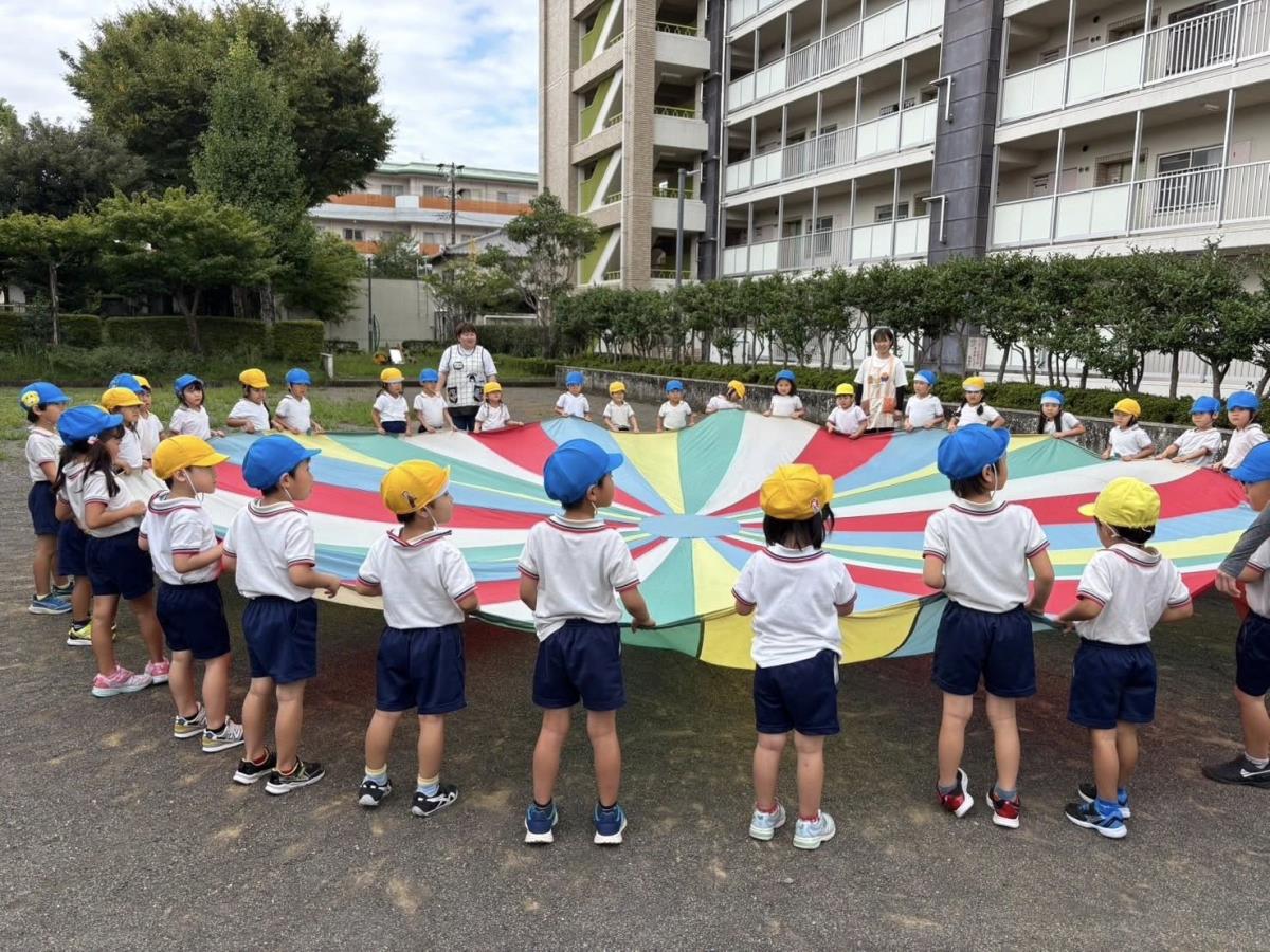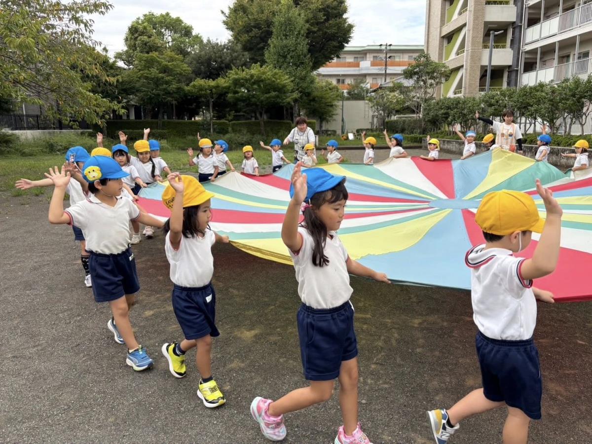 今日はお誕生会がありました。9月生まれのお友だちは、とても上手にインタビューにこたえてくれました。先生たちからのマジックショーのプレゼントを楽しんで観ていました!午後は涼しかったので、南公園で運動会の練習をしました。初めてのプレイバルーンでしたが、楽しんでおこなえました☆