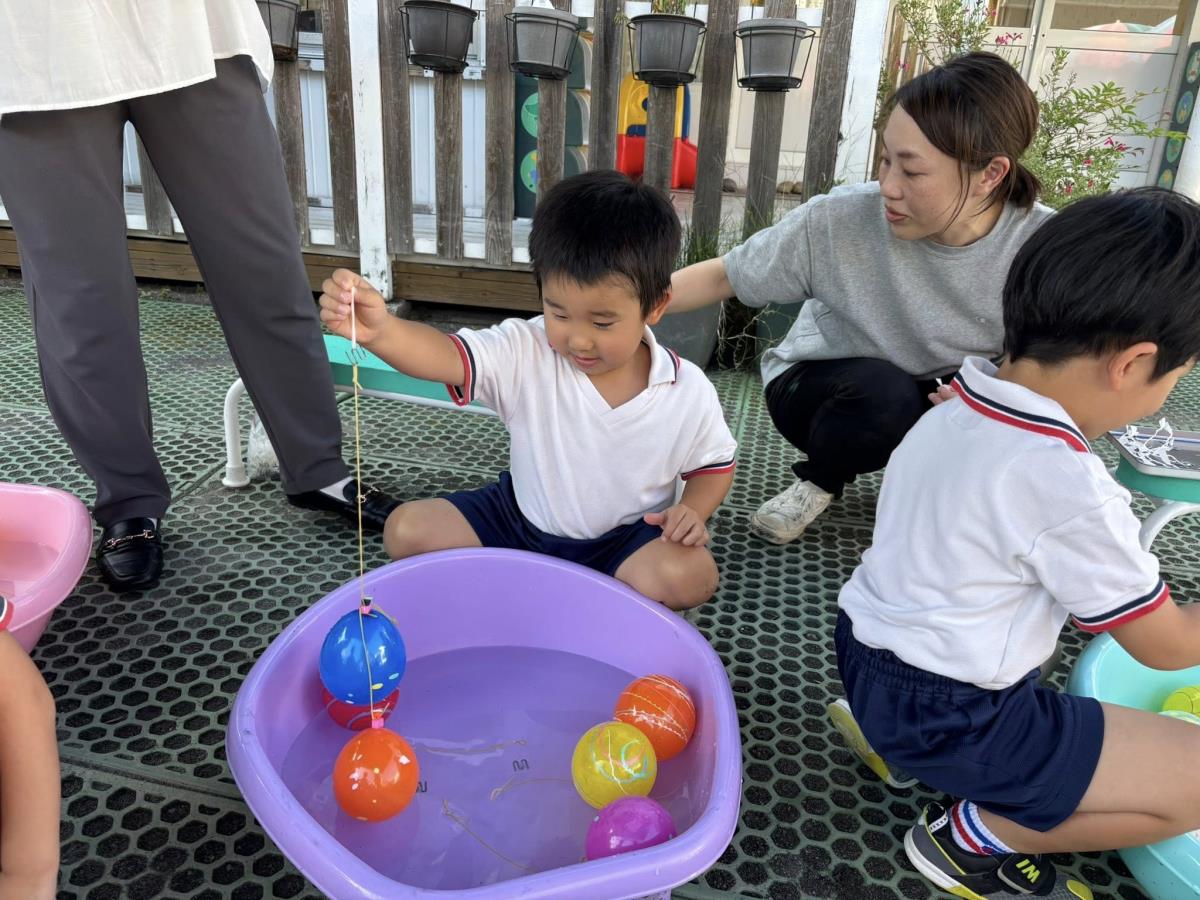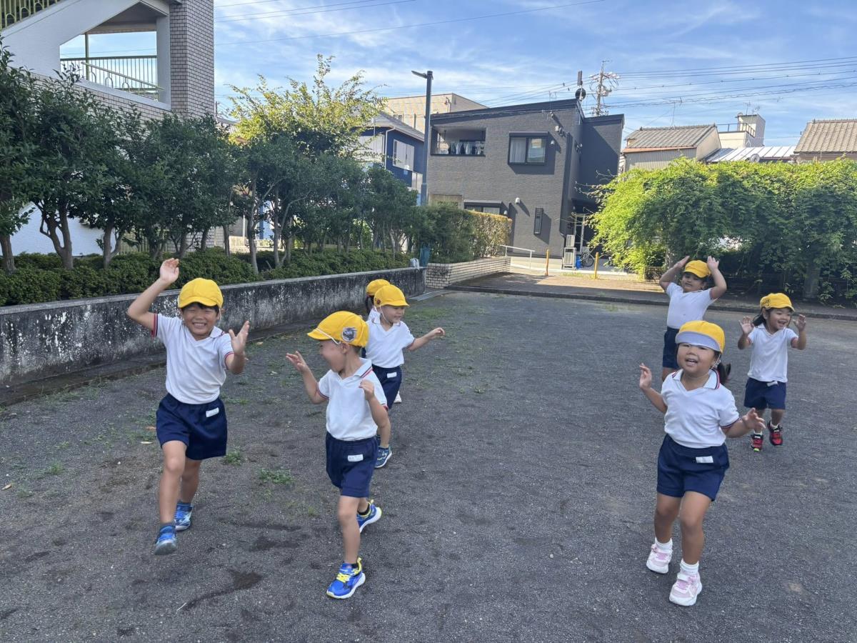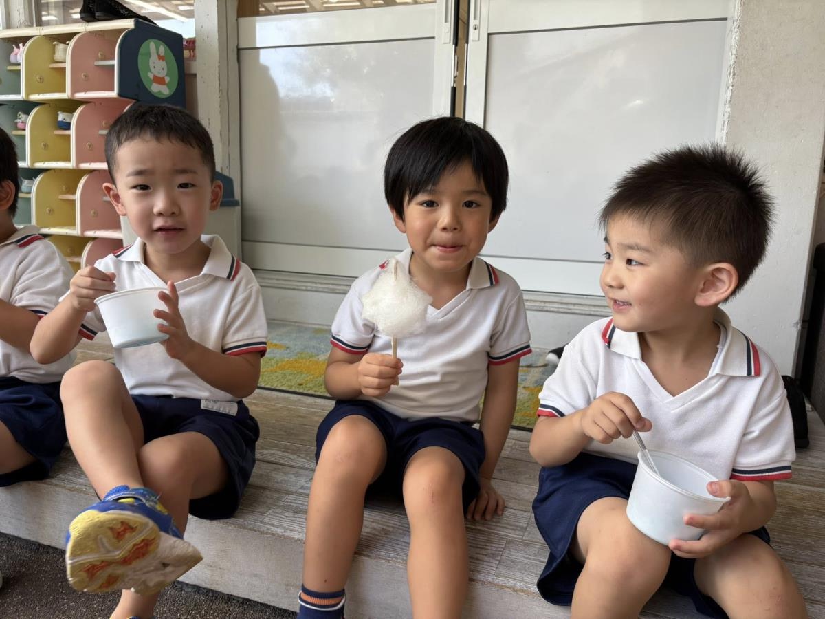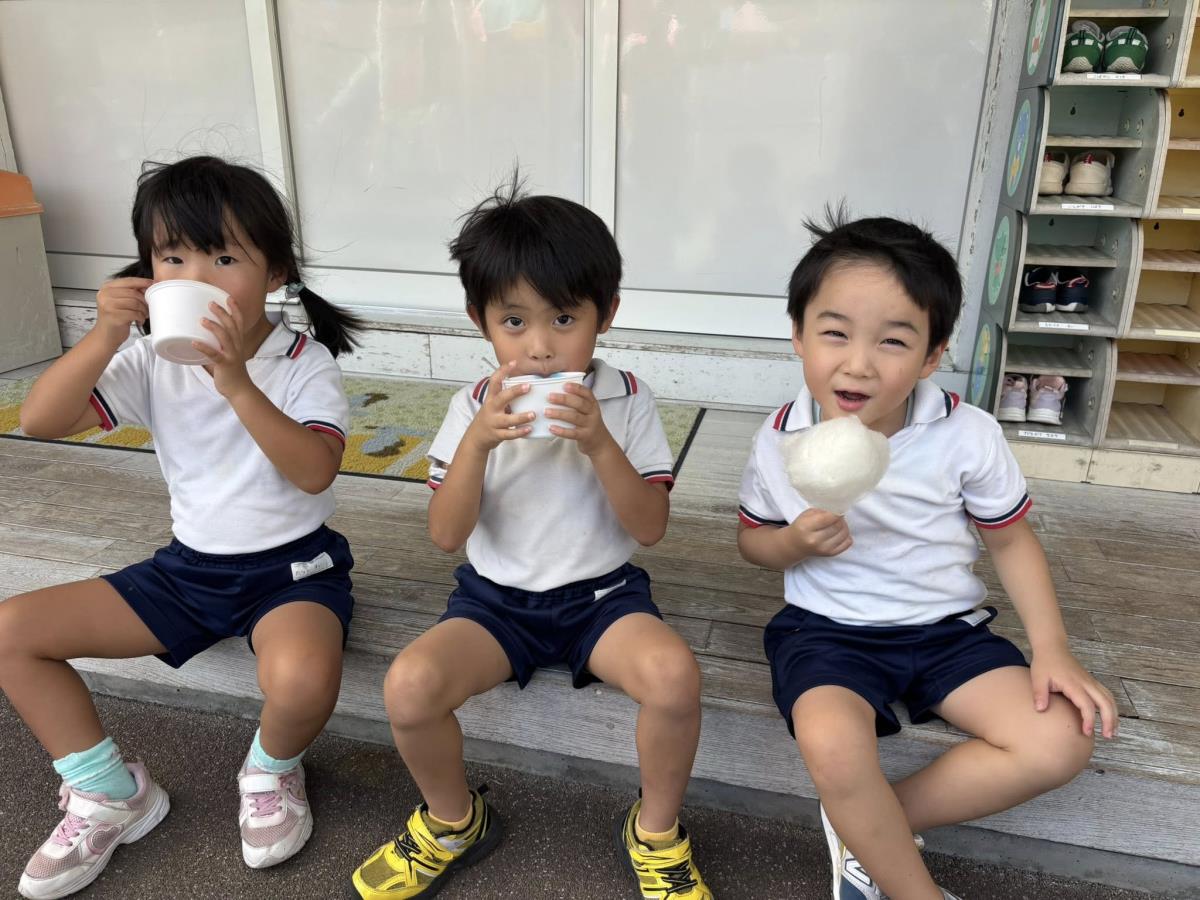 今日はお誕生会がありました。9月生まれのお友だちは、とても上手にインタビューにこたえてくれました。先生たちからのマジックショーのプレゼントを楽しんで観ていました!午後は涼しかったので、南公園で運動会の練習をしました。初めてのプレイバルーンでしたが、楽しんでおこなえました☆