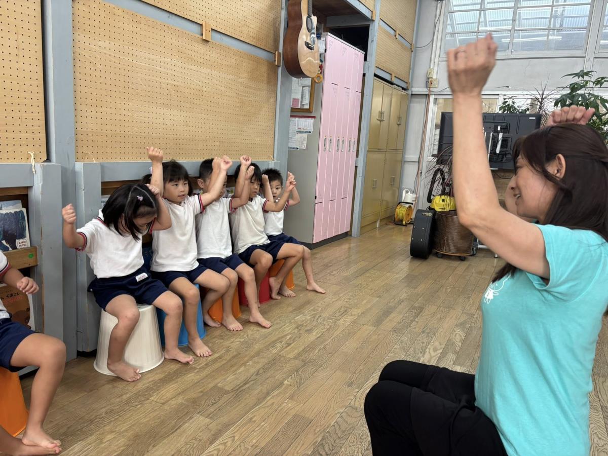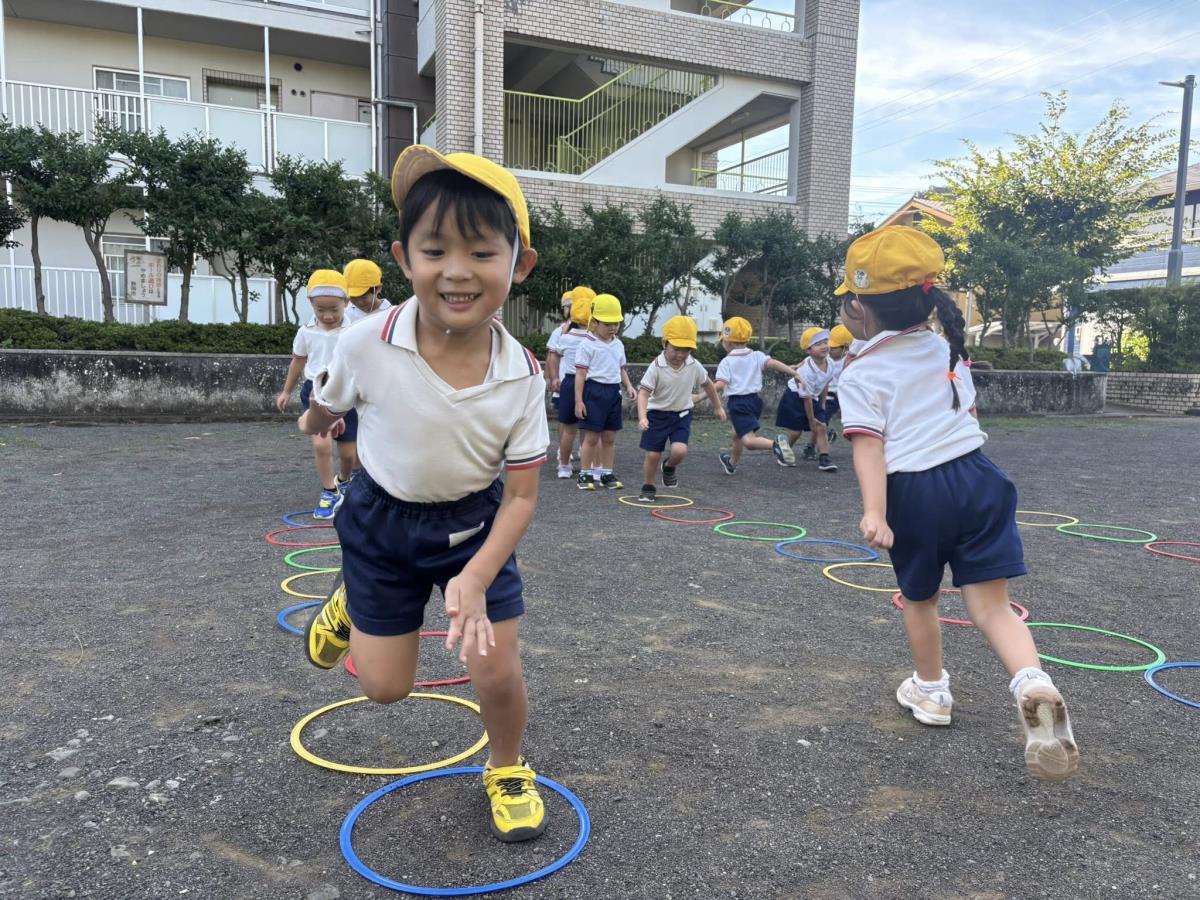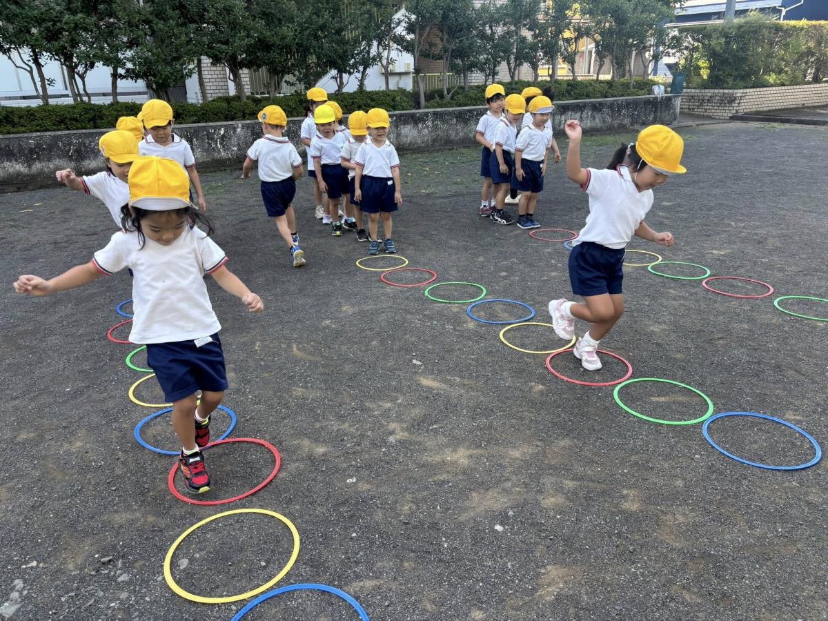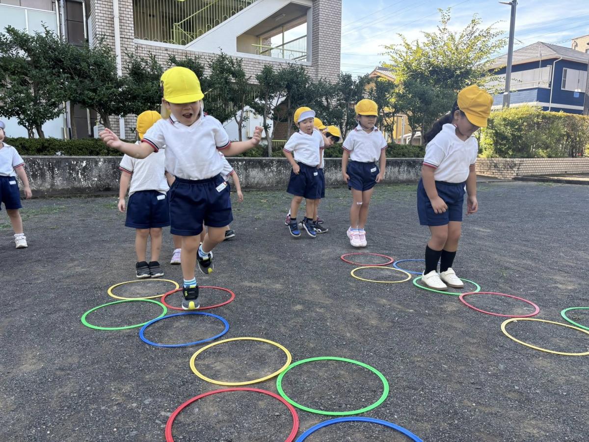 今日は午前中、体育遊びがありました。動物になりきって歩いたり、輪っかの中をけんけんぱして進んだり、「バナナ鬼」というゲームをしたりして楽しみました。午後はプールに入りました。バタ足の力も強くなってきました☆